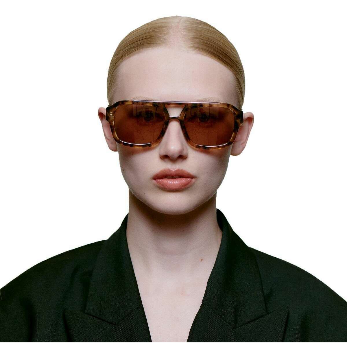 Manufactured from 100% polycarbonate are these coquina brown unisex kaya sunglasses by the designer A.Kjaerbede. It measures 5.7cm(lens) x 1.9cm(bridge) x 14.5cm(temples). All the sunglasses come complete with a.kjaerbede packaging. The A.Kjaerbede Kaya Sunglasses - Coquina Brown have an oversized 70’s inspired pilot frame that will bring character and fierceness to finish off any attire. Featuring UV 400 protection, high quality optical hinges, formable temples and crafted from more than 50% recycled materials, these stylish sunglasses are not only high in quality, but they are also kind to the environment to.
