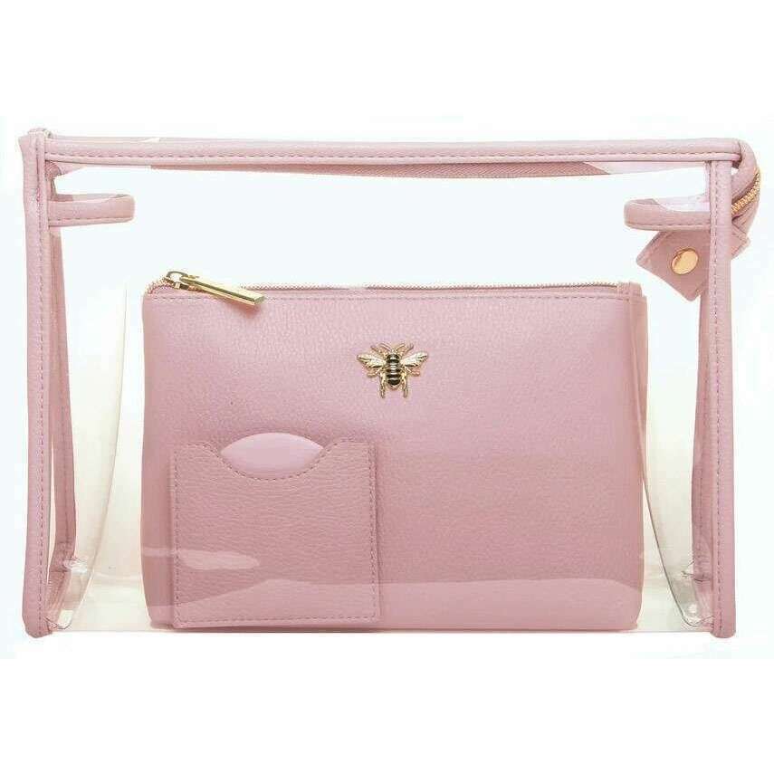 Perfect for women is this Alice Wheeler London pink 3 piece beauty gift set, it is also made from 100% vegan faux leather. It measures clear case: 21cm(height) x 21cm(width) x 8cm(depth) beauty case: 13.5cm(height) x 20cm(width) x 6cm(depth) compact: 7.4cm(height) x 8.2cm(width). It is recommended to wipe clean with damp cloth to keep this bag in good condition. All the bags come complete in alice wheeler london packaging. The Alice Wheeler London 3 Piece Beauty Gift Set - Pink will make a superb addition to your collection, giving you 2 storage cases and a handy compact mirror. The clear case is perfect for travelling while the stylish make-up bag will look elegant on your dresser and will keep all of your beauty products in one place. Both the make-up bag and compact are embellished with the beautifully iconic Honeybee. This set is perfect as a gift idea.