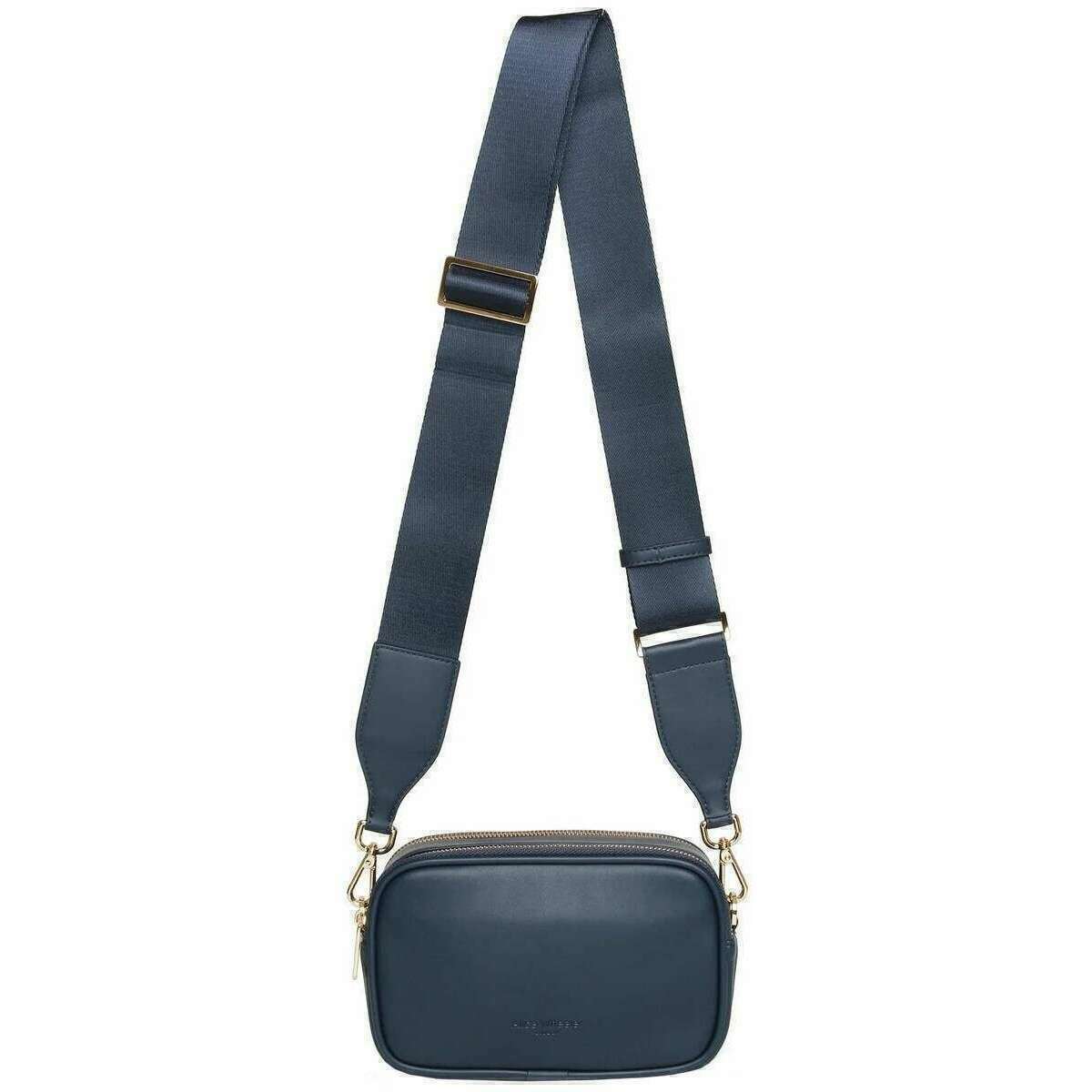 This women's madrid camera crossbody bag by the brand Alice Wheeler London is made from 100% nappa finish vegan faux leather and is showcased in navy. It measures 12cm(height) x 20cm(width) x 6cm(depth). All the bags come complete with alice wheeler packaging. The Alice Wheeler London Madrid Camera Crossbody Bag - Navy is a stunning hands-free bag to ensure comfort and practicality. The double zip compartments and the internal side pocket allows extra storage to ensure all of your essential items are with you on the go. This stunning striped design features the signature logo which still gives that simple but elegant look. The detachable adjustable strap co-ordinates with the bag allowing you it to match your outfits perfectly. This bag is made from vegan faux leather means that this bag is completely eco-friendly.