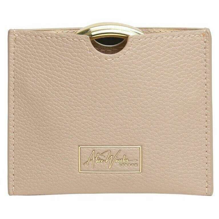 This well made women's mirror and pouch from Alice Wheeler London comes in a stone beige colour and is manufactured from 100% vegan faux leather. It measures 9.5cm(height) x 11.5cm(width). It is recommended to wipe clean with damp cloth to keep this compact in good condition. All the compacts come complete in alice wheeler london packaging. The Alice Wheeler London Mirror and Pouch - Stone Beige is a handy accessory to keep in your bag for when you need a quick glance at how your hair is looking or if your make-up needs a little top up. It comes in a faux leather slip case with is debossed with Alice Wheeler branding that will keep the little mirror protected wen not in use. An ideal choice of gift.