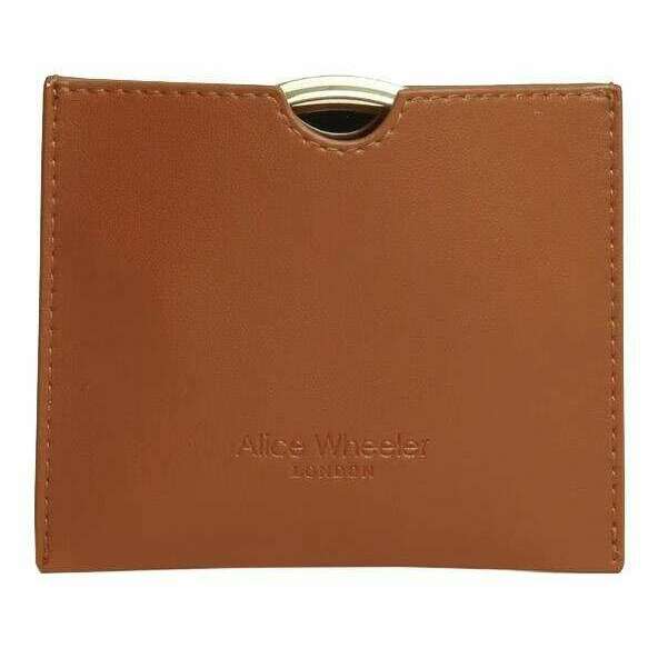 This women's venice mirror and pouch by the brand Alice Wheeler London is made from 100% vegan faux leather and is showcased in tan. It measures 9.5cm(height) x 11.5cm(width). All the compacts come complete in alice wheeler london packaging. The Alice Wheeler London Venice Mirror and Pouch - Tan is a handy accessory to keep in your bag for when you need a quick glance at how your hair is looking or if your make-up needs a little top up. It comes in a faux leather slip case with is debossed with Alice Wheeler branding that will keep the little mirror protected wen not in use. An ideal choice of gift.