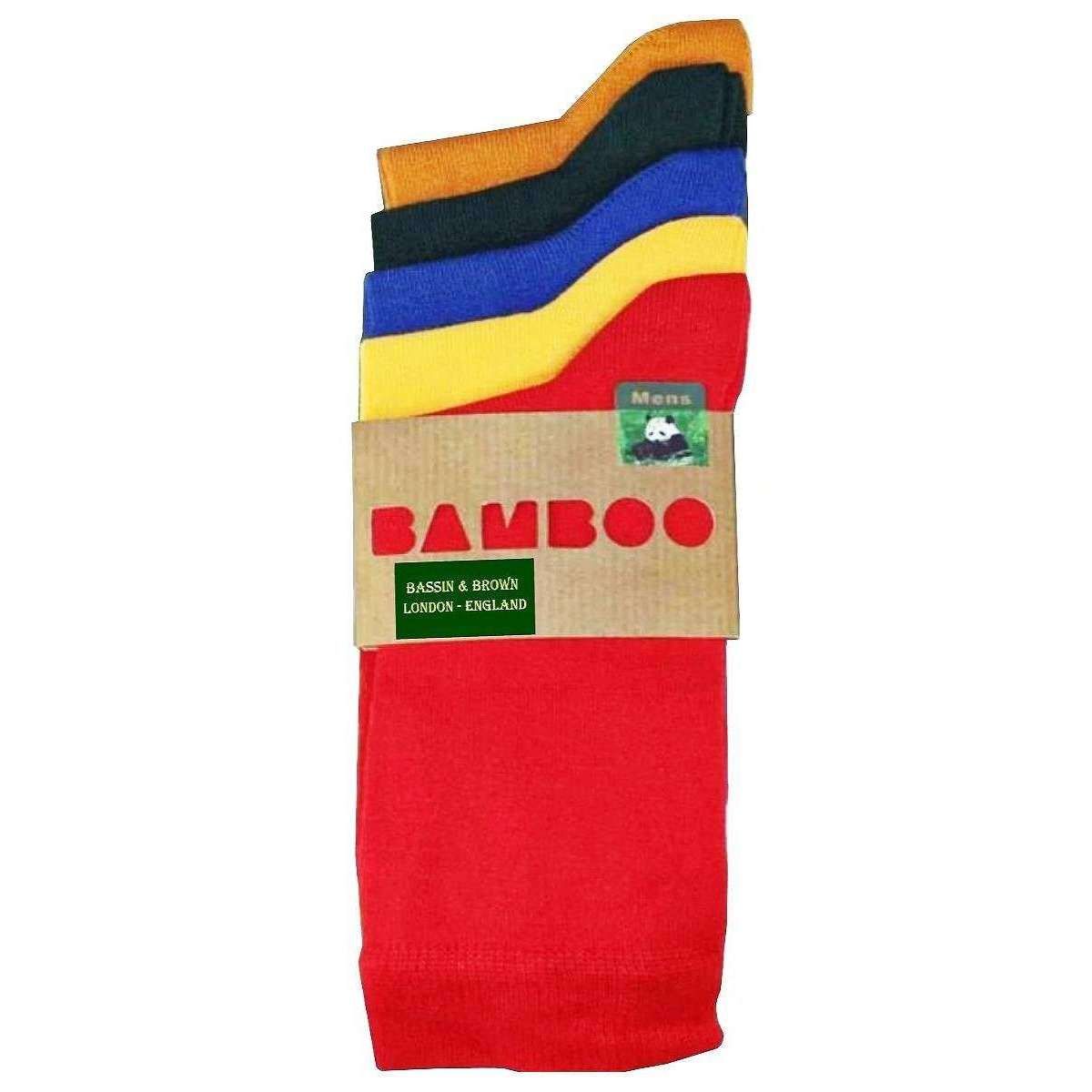 Bassin and Brown 5 Pack Plain Bamboo Socks - Red/Yellow/Sea Green/Blue/Mustard