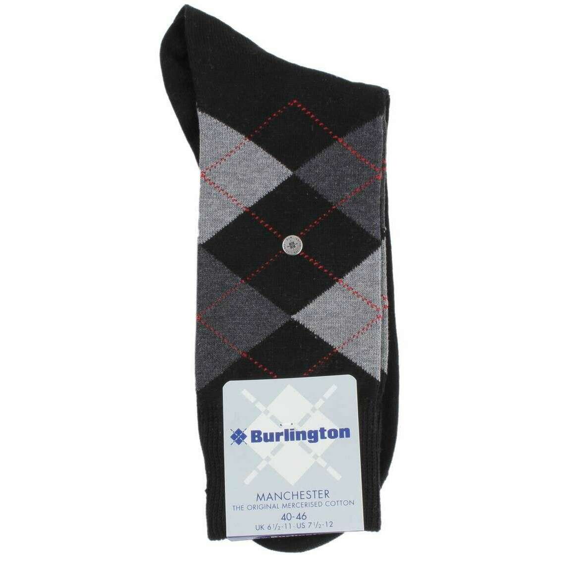Burlington Argyle Mercerised Cotton Socks - Black/Grey