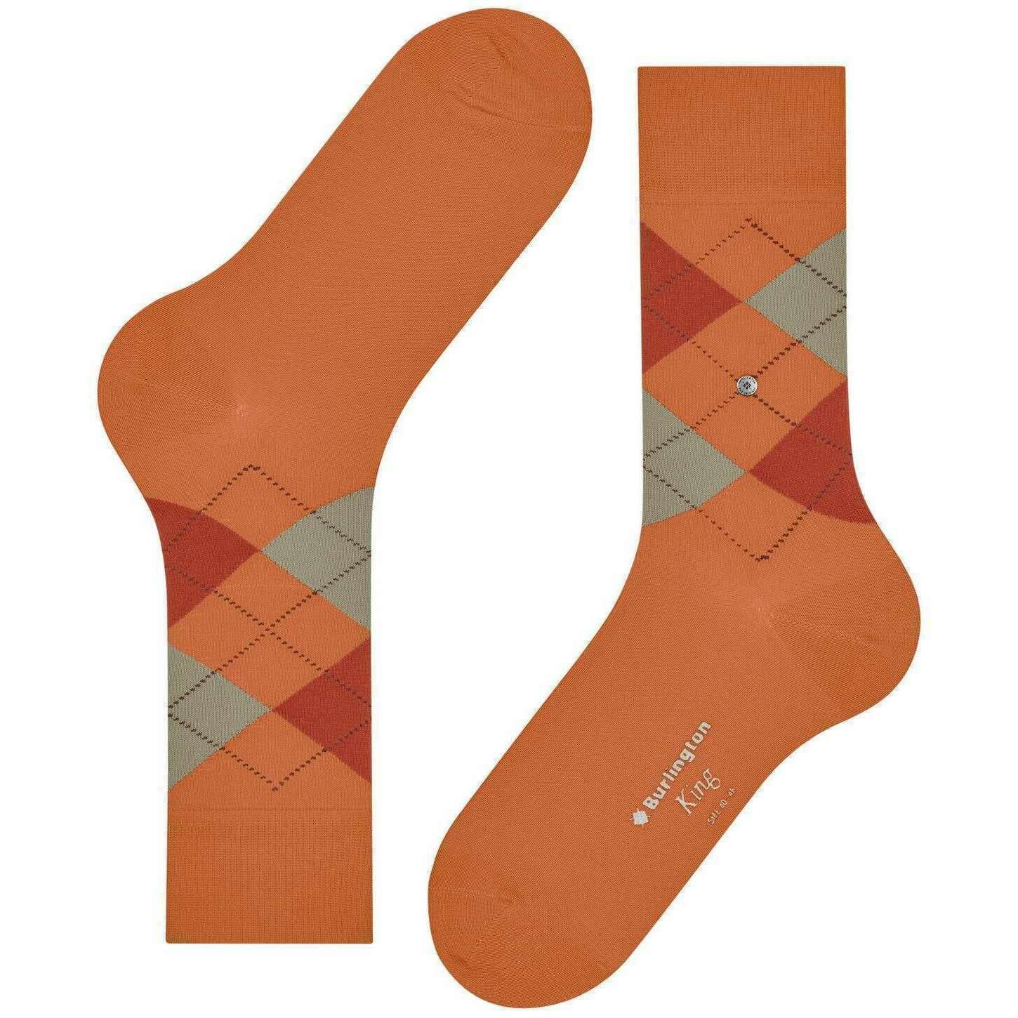 Introducing these men's king socks by Burlington, they are manufactured from 67% organic cotton and 33% polyamide(20% recycled) in a orange colour. Also the orange socks are designed in a argyle pattern, It is recommended to machine wash at 40 degrees to keep these socks in good condition. All the socks come complete with burlington sock tags. The Burlington King Socks - Orange are fun and classy! Made from sustainable yarns and year-round quality combed cotton, these socks offer a great comfort, perfect for all day wear. The traditional Argyle pattern and Burlington clip co-ordinate perfectly, making these socks a versatile pick for formal, semi-formal or casual wear.