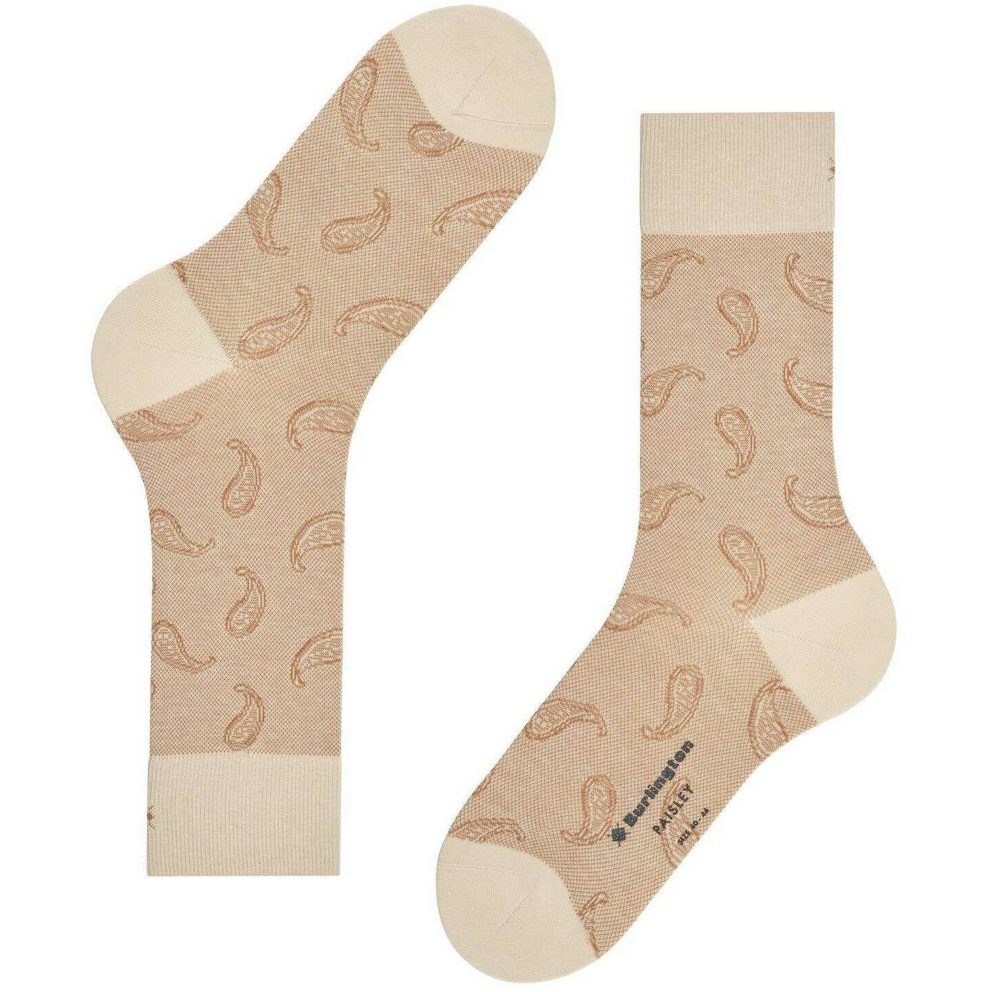 Perfect for men are these Burlington zement beige paisley socks, they are also made from 78% organic cotton, 21% polyamide and 1% elastane. Also the zement beige socks are designed in a paisley pattern, It is recommended to wash at 40 degrees to keep these socks in good condition. All the socks come complete with burlington sock tags. The Burlington Paisley Socks - Zement Beige are more than just a fashion accessory, they're a statement of style, fun, and superior craftsmanship. Crafted from a blend of combed cotton, polyester, and elastane, these socks provide a breathable, comfortable fit with a hint of stretch. The high-quality materials ensure durability while maintaining a cozy, skin-friendly texture. The knitted-in Burlington logo and trendy paisley pattern adds a playful touch to any outfit and is for those seeking a fun twist in their everyday attire.