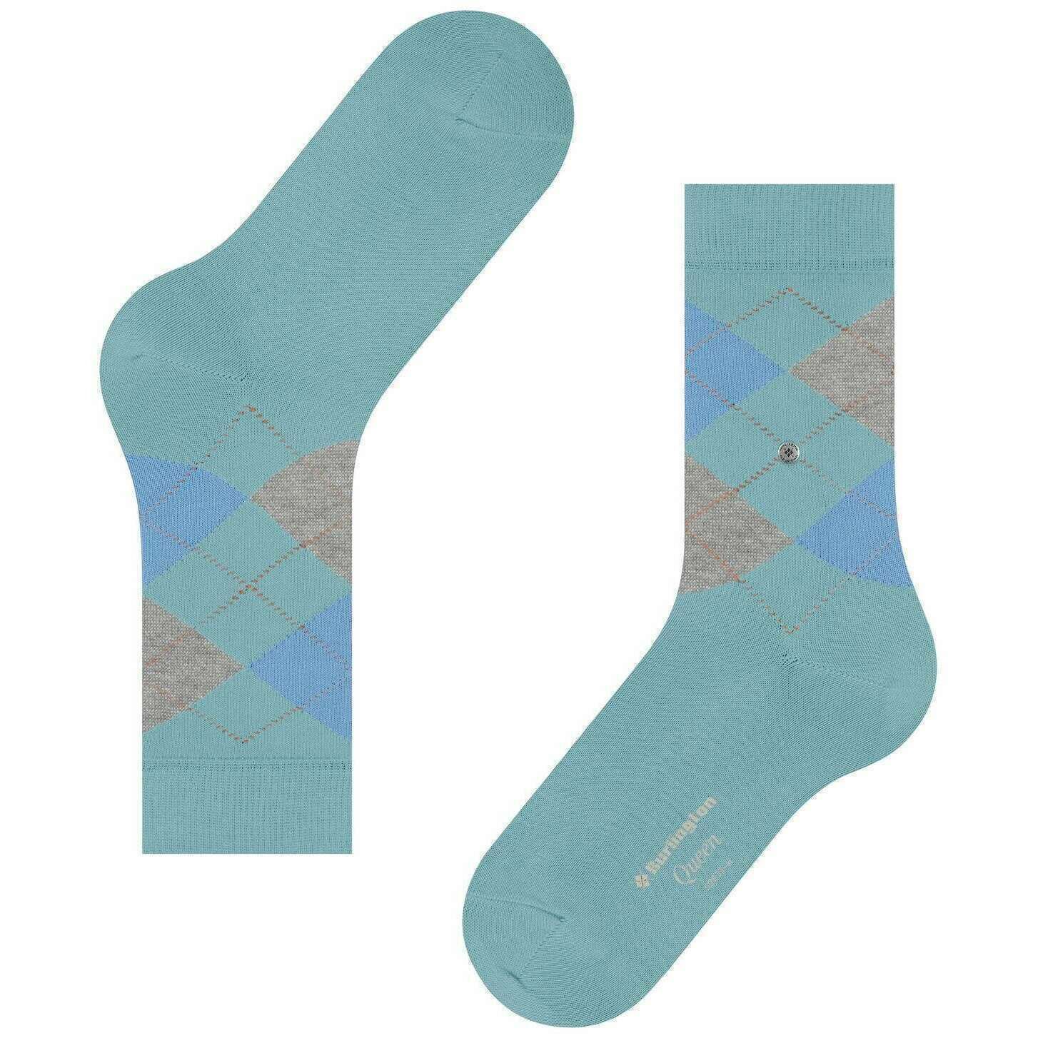Introducing these women's queen socks by Burlington, they are manufactured from 67% organic cotton and 33% polyamide (20% recycled) in a silent water blue colour. Also the silent water blue socks are designed in a argyle pattern, It is recommended to machine wash at 40 degrees to keep these socks in good condition. All the socks come complete with burlington sock tags. The Burlington Queen Socks - Silent Water Blue are the perfect combed cotton socks for all purposes. These socks stretch and conform to the feet for a relaxed fit. The stunning colourway and the classic Burlington clip on the ankle makes these socks great for styling in any season. Designed to provide a natural comfortable wear and being crafted from sustainable yarns, your feet will be happy in Queens.