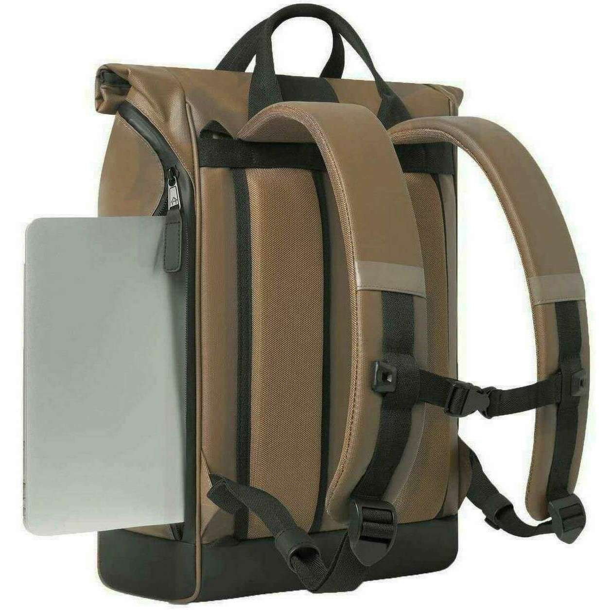 Brought to you by the brand Cabaia, this da nang brown unisex explorer medium backpack is made from 100% recycled polyester. It measures 40cm(height) x 25cm(width) x 16cm(depth). It is recommended to wipe clean to keep this bag in good condition. All the bags come complete in cabaia packaging. The Cabaia Explorer Medium Backpack - Da Nang Brown offers a stylish and sustainable solution for individuals seeking eco-friendly and comfortable backpacks. Featuring a main 15-inch laptop compartment, this popular rolltop backpack allows you to easily adjust its size to fit all your essentials securely. The outside pocket with zipper provides additional storage options for quick access to essentials like your phone or keys. Full of features including: magnetic closure buckle, reflectors on the front pocket and straps, back padding, a side opening, pocket outside for water bottle, a chest system and a waterproof coating, it is ideal for everyday use. With a generous volume of 23 litres, this vegan friendly backpack not only looks good but also contributes to a greener future.