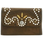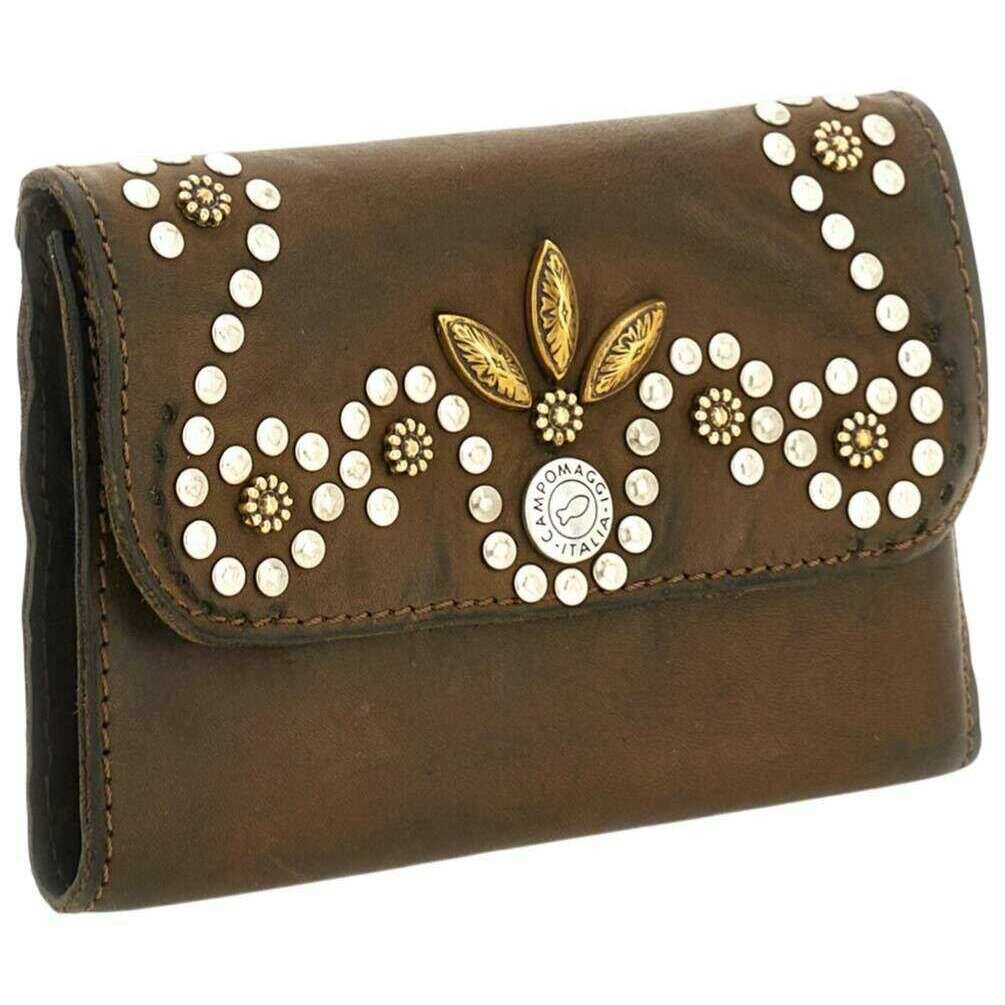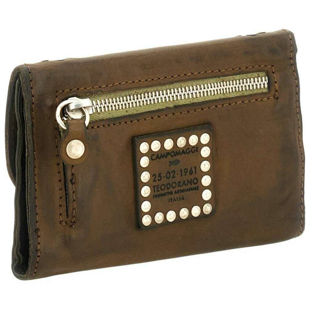 Designer Campomaggi has brought you this women's 100% vegtable tanned cowhide leather purse using military green tones. It measures 14cm(height) x 10cm(width) x 1.5cm(depth). Campomaggi have made this mirta siena flap over purse in Italy. All the purses come complete with campomaggi packaging. The Campomaggi Mirta Siena Flap Over Purse - Military Green is a refined accessory that showcases the brand s distinctive Italian craftsmanship. Made from premium vegetable?tanned cowhide leather, it develops a rich patina over time, reflecting the natural beauty and durability of the material. The front is adorned with an elegant stud design, adding a subtle decorative touch that enhances its classic silhouette. Secured with a press stud closure, the purse opens to reveal a thoughtfully organised interior featuring three compartments and ten card holders ideal for keeping cards, cash, receipts, and essentials neatly arranged. Despite its structured layout, the design remains slim and easy to carry, making it perfect for everyday use. Handmade in Italy, the Campomaggi Mirta Siena Flap Over Purse blends functionality, artisanal detail, and timeless style, making it a sophisticated addition to any accessories collection.