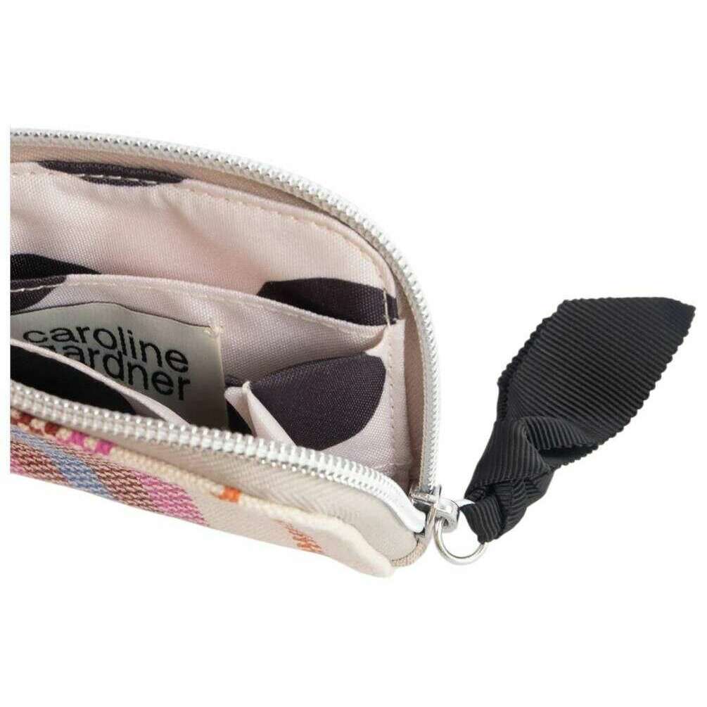 This women's checkerboard stripe printed canvas corner purse by the brand Caroline Gardner is made from 100% pvc coated cotton and is showcased in white. It measures 8.5cm(height) x 11.5cm(width). All the purses come complete with caroline gardner tags. The Caroline Gardner Checkerboard Stripe Printed Canvas Corner Purse - White/Purple/Orange is a must have if you love your girly accessories. Featuring a zipper closure for security and internal pockets to store your essential cards and cash. This purse has great storage for everything you need when shopping or going for a meal and drinks with the girls, perfectly matching every attire. Finished with a printed canvas exterior and a grosgrain pull.