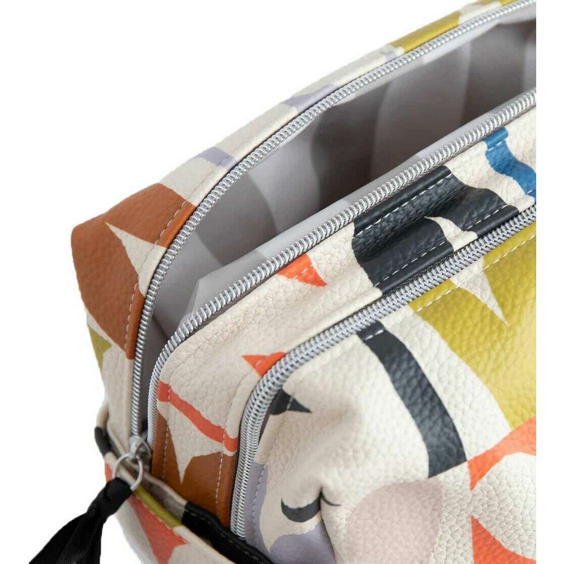 • Double Zipper Closure , 2 Sections , Grab Handle , Silver Hardware , Grosgrain Pulls