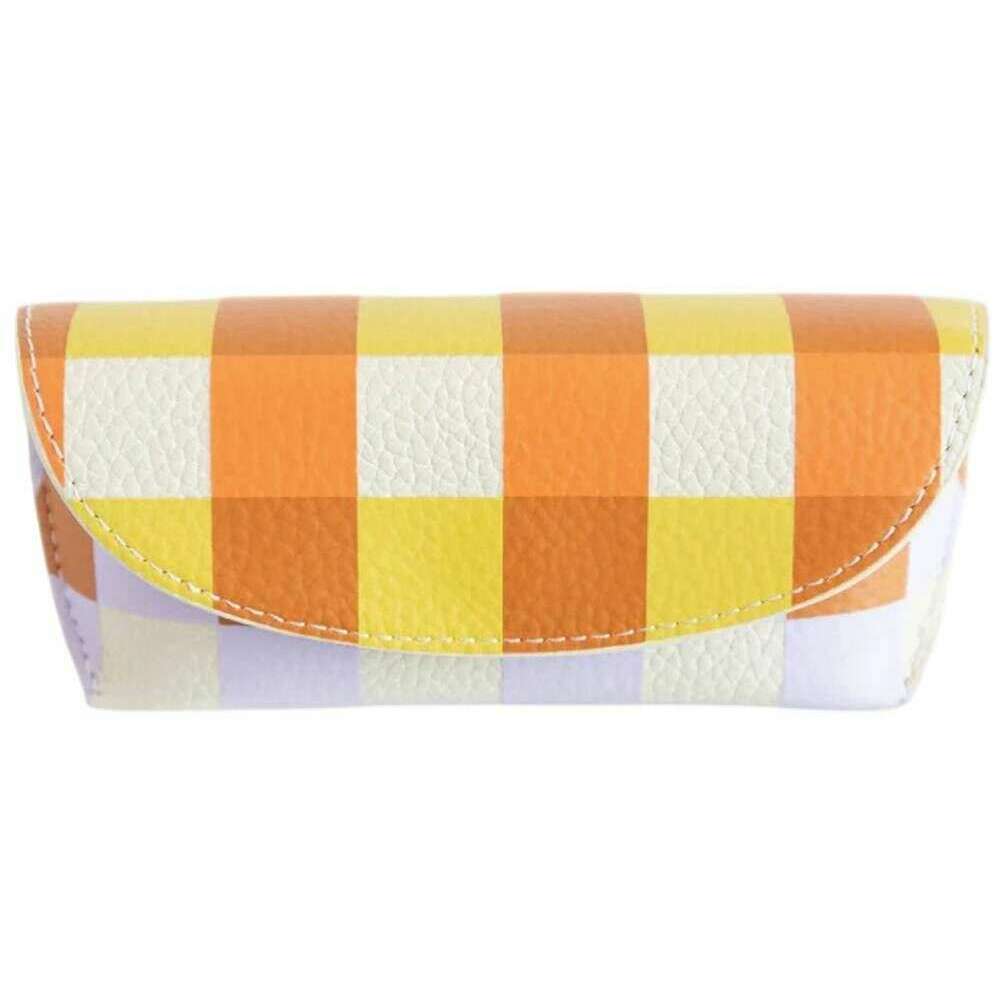 Caroline Gardner Multi Check Flap Glasses Case - White/Purple/Orange