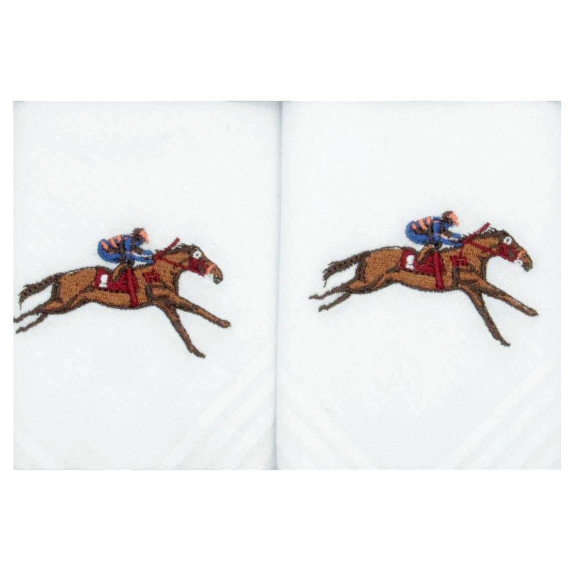 David Aster Racehorse Embroidered Handkerchiefs - White