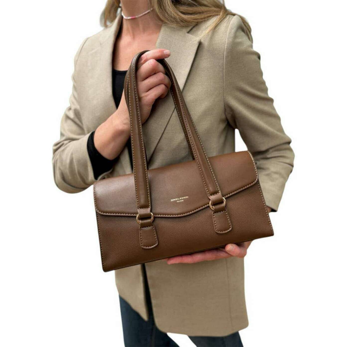 David Jones Long Half Flap Short Shoulder Bag - Cocoa Brown