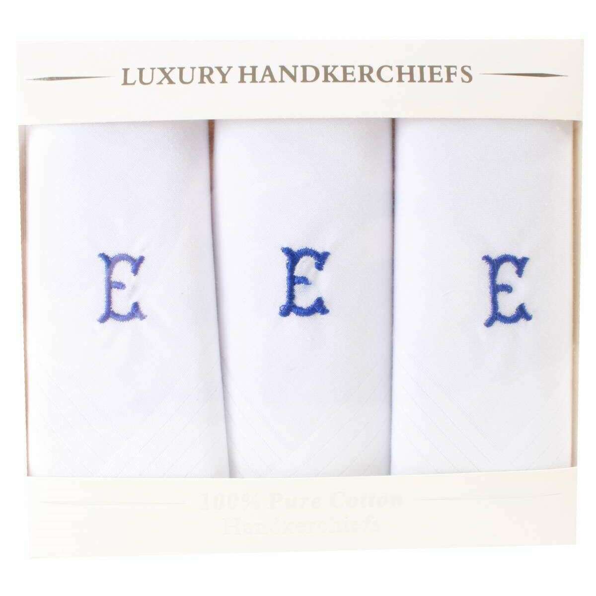 Brought to you by the brand David Van Hagen, this white/blue men's e initial 3 pack handkerchief is made from 100% pure cotton. It measures 40cm(height) x 40cm(width). Also the white/blue handkerchief is designed in a plain pattern, It is recommended to machine wash at 40 degrees and do not tumble dry or dry clean to keep this handkerchief in good condition. 3 pack handkerchiefs are value for money ensuring they are a good buy, All the handkerchiefs come complete in a presentation box. The David Van Hagen E Initial 3 Pack Handkerchief - White/Blue would make the perfect and meaningful personalised gift for a special gentleman. These are needed for all occasions and will become a handy accessory and a staple for every day. The embroidered letter on the front adds a simple yet classic look with a touch of personality. Crafted from high-quality pure cotton ensures durability that is also highly absorbent and has a luxurious and soft feel.