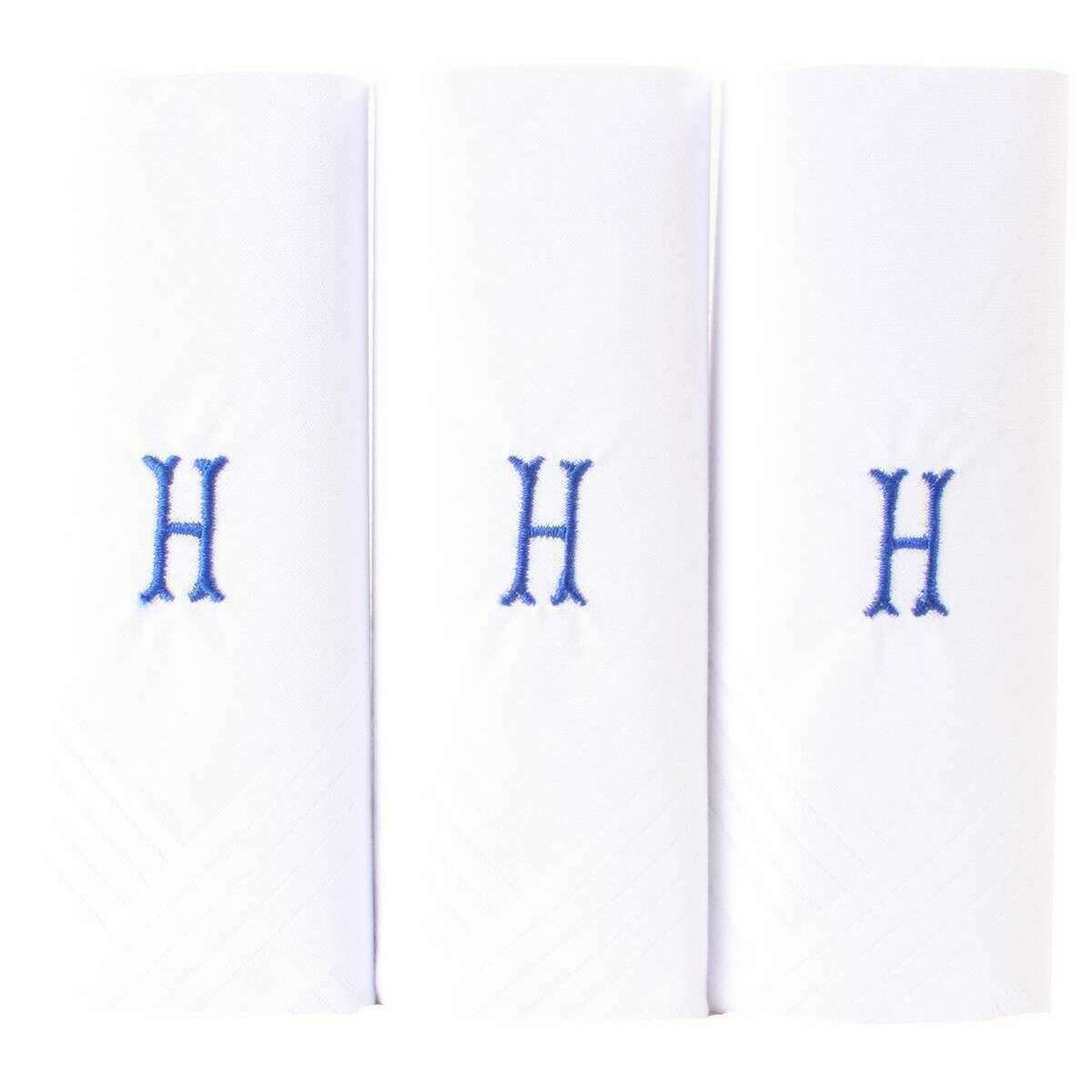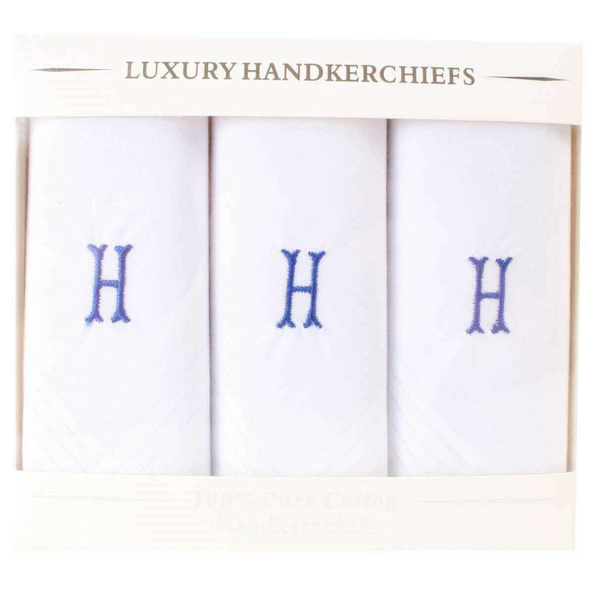 Introducing this men's h initial 3 pack handkerchief by David Van Hagen, it is manufactured from 100% pure cotton in a white/blue colour. It measures 40cm(height) x 40cm(width). Also the white/blue handkerchief is designed in a plain pattern, It is recommended to machine wash at 40 degrees and do not tumble dry or dry clean to keep this handkerchief in good condition. 3 pack handkerchiefs are value for money ensuring they are a good buy, All the handkerchiefs come complete in a presentation box. The David Van Hagen H Initial 3 Pack Handkerchief - White/Blue would make the perfect and meaningful personalised gift for a special gentleman. These are needed for all occasions and will become a handy accessory and a staple for every day. The embroidered letter on the front adds a simple yet classic look with a touch of personality. Crafted from high-quality pure cotton ensures durability that is also highly absorbent and has a luxurious and soft feel.
