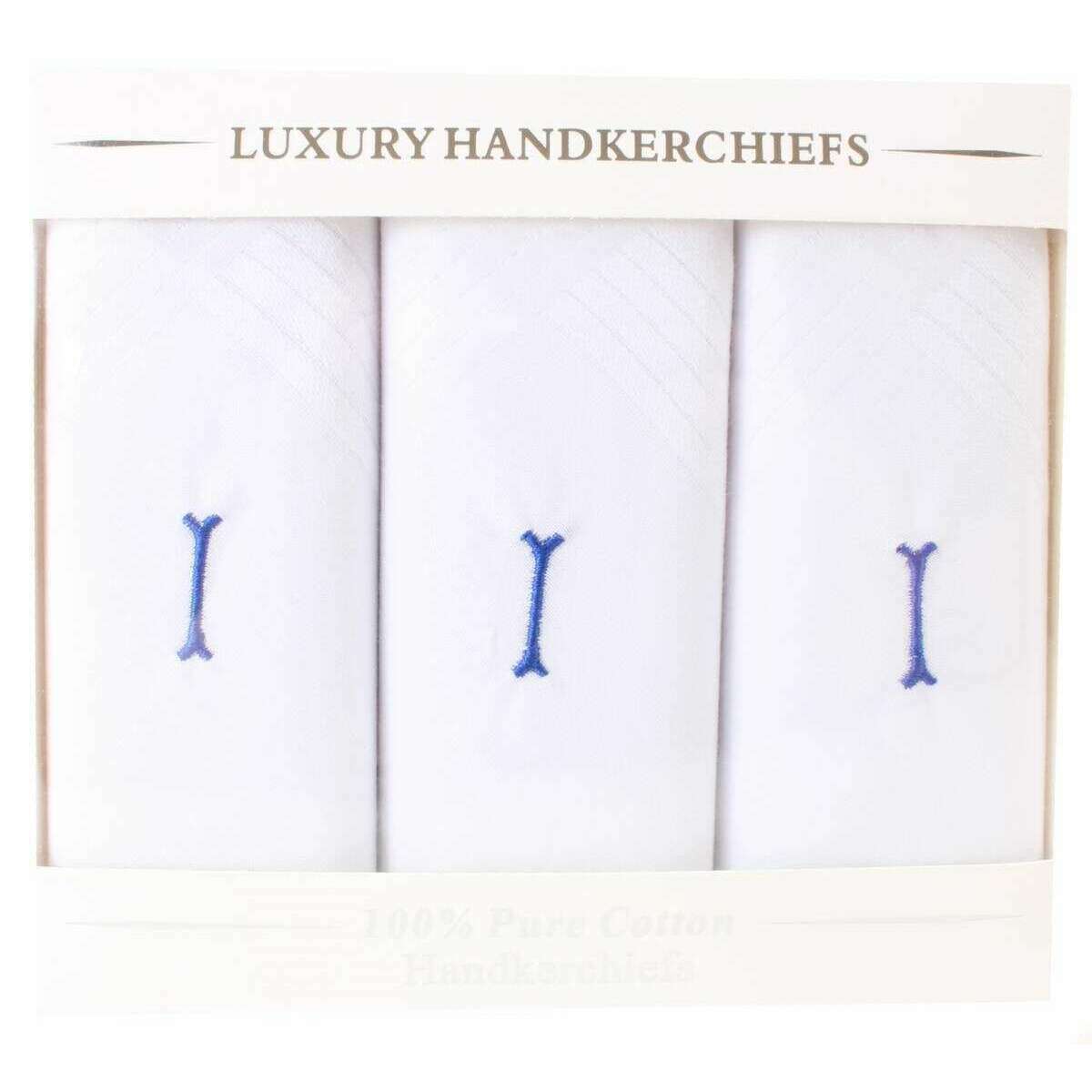 David Van Hagen I Initial 3 Pack Handkerchief - White/Blue