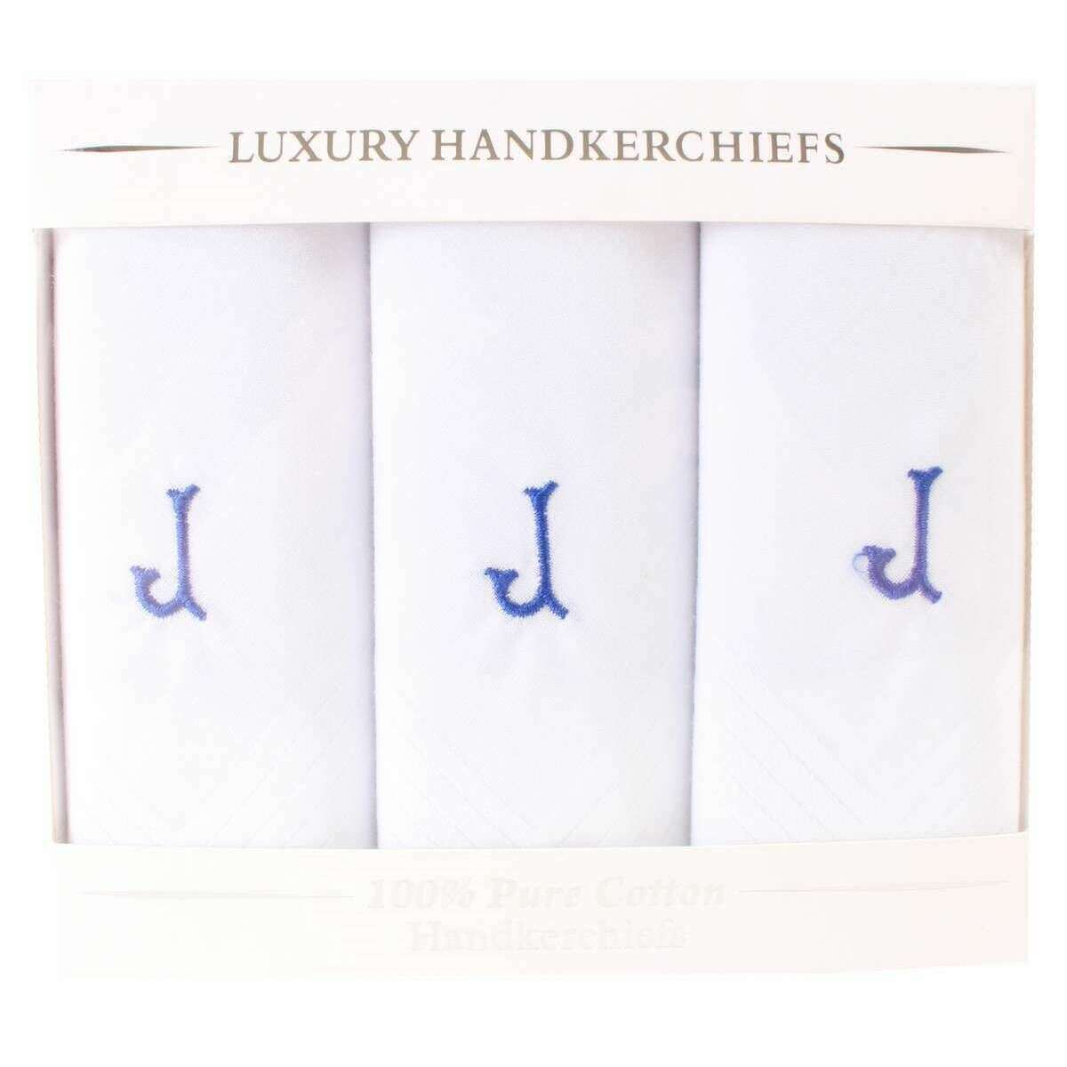 David Van Hagen J Initial 3 Pack Handkerchief - White/Blue