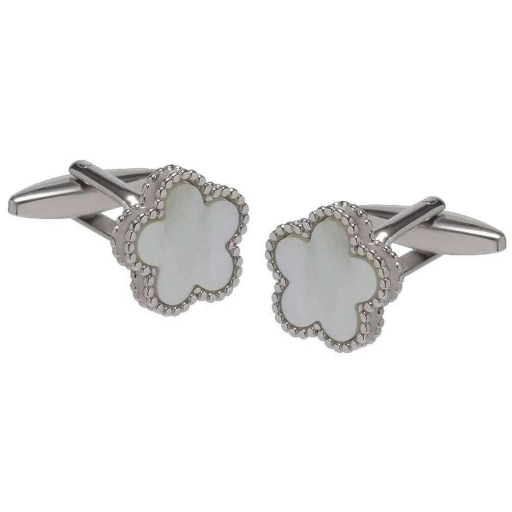 David Van Hagen Mother Of Pearl Flower Cufflinks - White/Silver