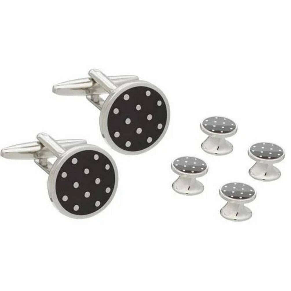 David Van Hagen Polka Dot Dress Studs and Cufflinks Set - Black/Silver