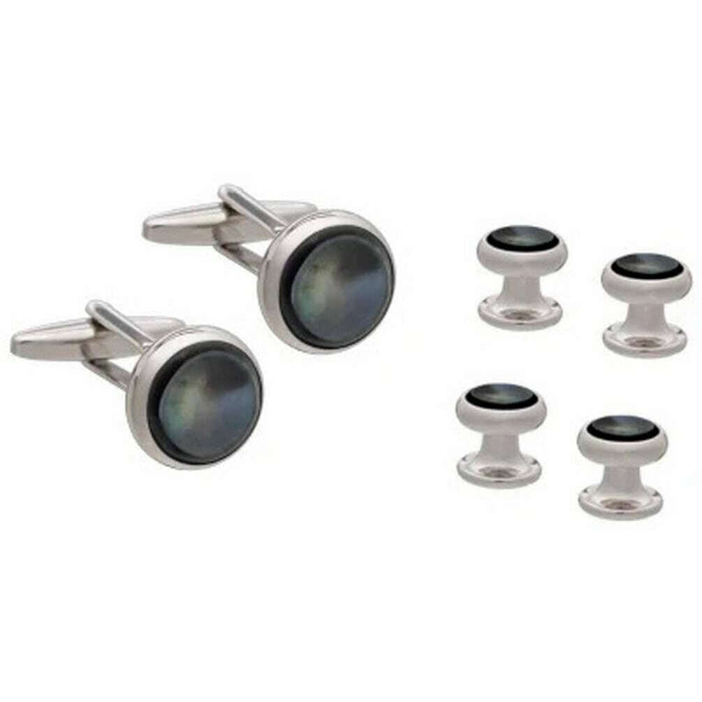 David Van Hagen Smokey Mother Of Pearl Dress Stud and Cufflink Set - Grey/Silver