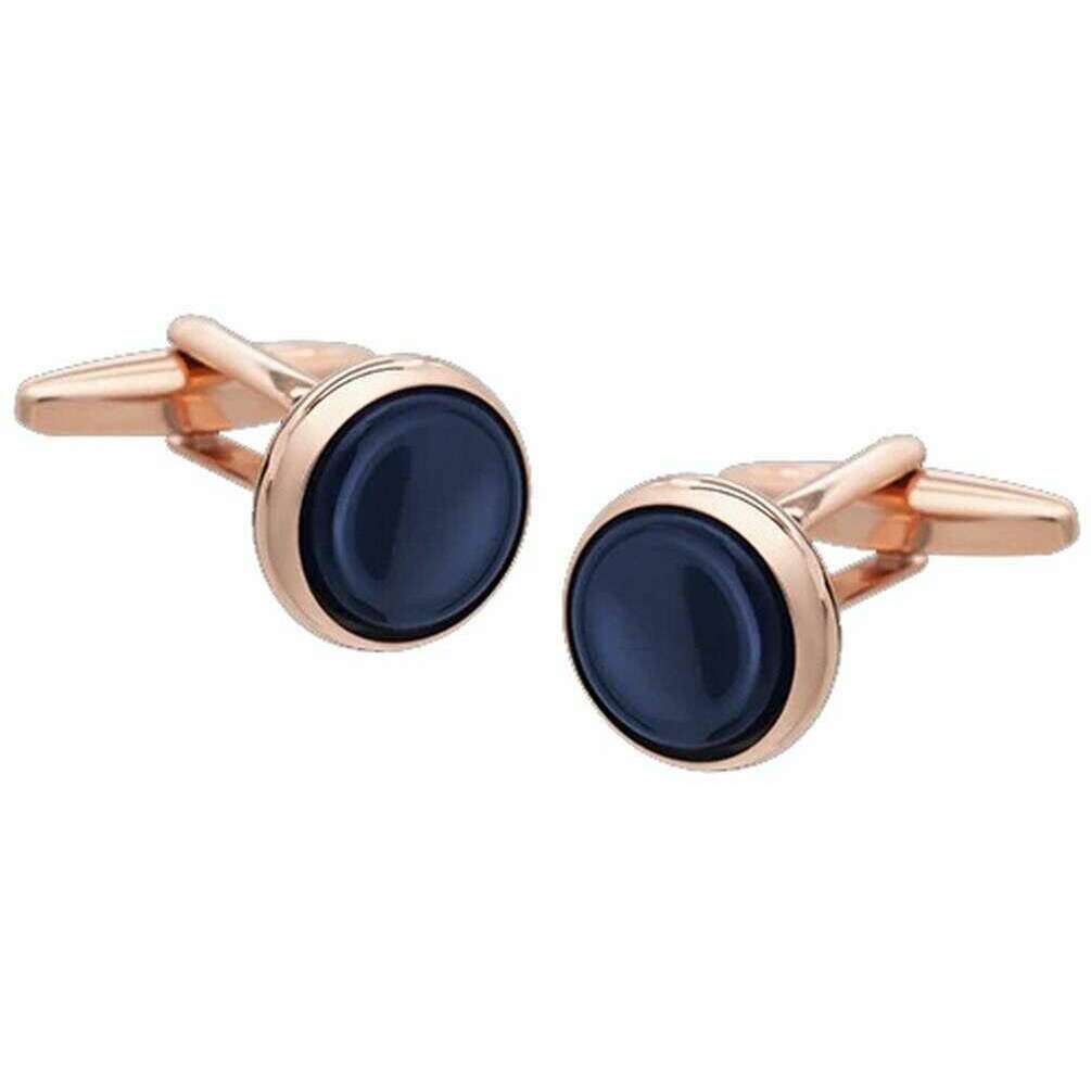 • Standard Cufflink Bascule , 14mm Diameter , Concave Dip Sodalite Stone , Natural Semi-Precious Stones , Rose Gold Casing