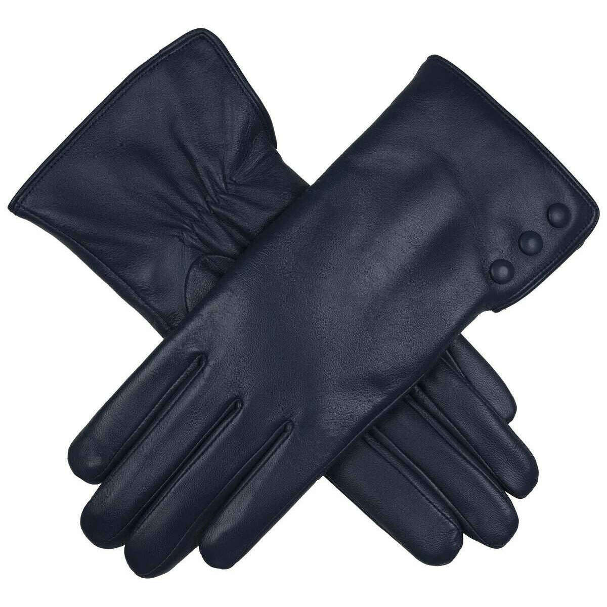 Manufactured from 100% hairsheep leather and polyester faux fur lining are these navy women's agata water-resistant leather gloves by the designer Dents. Also the navy gloves are designed in a plain pattern, All the gloves come complete with dents tags. The Dents Agata Water-Resistant Leather Gloves - Navy are a luxurious and elegant accessory, perfect for adding sophistication and comfort to any outfit. The interior of these gloves are lined with soft faux fur which adds a layer of warmth and enhances comfort, making the gloves a pleasure to wear. This pair features touchscreen technology enabling you to go on your phone without compromising warmth. These gloves are an ideal accessory for those looking to add a touch of elegance and practicality to their cold-weather wardrobe.