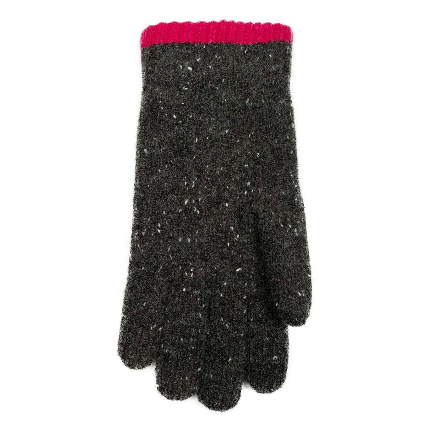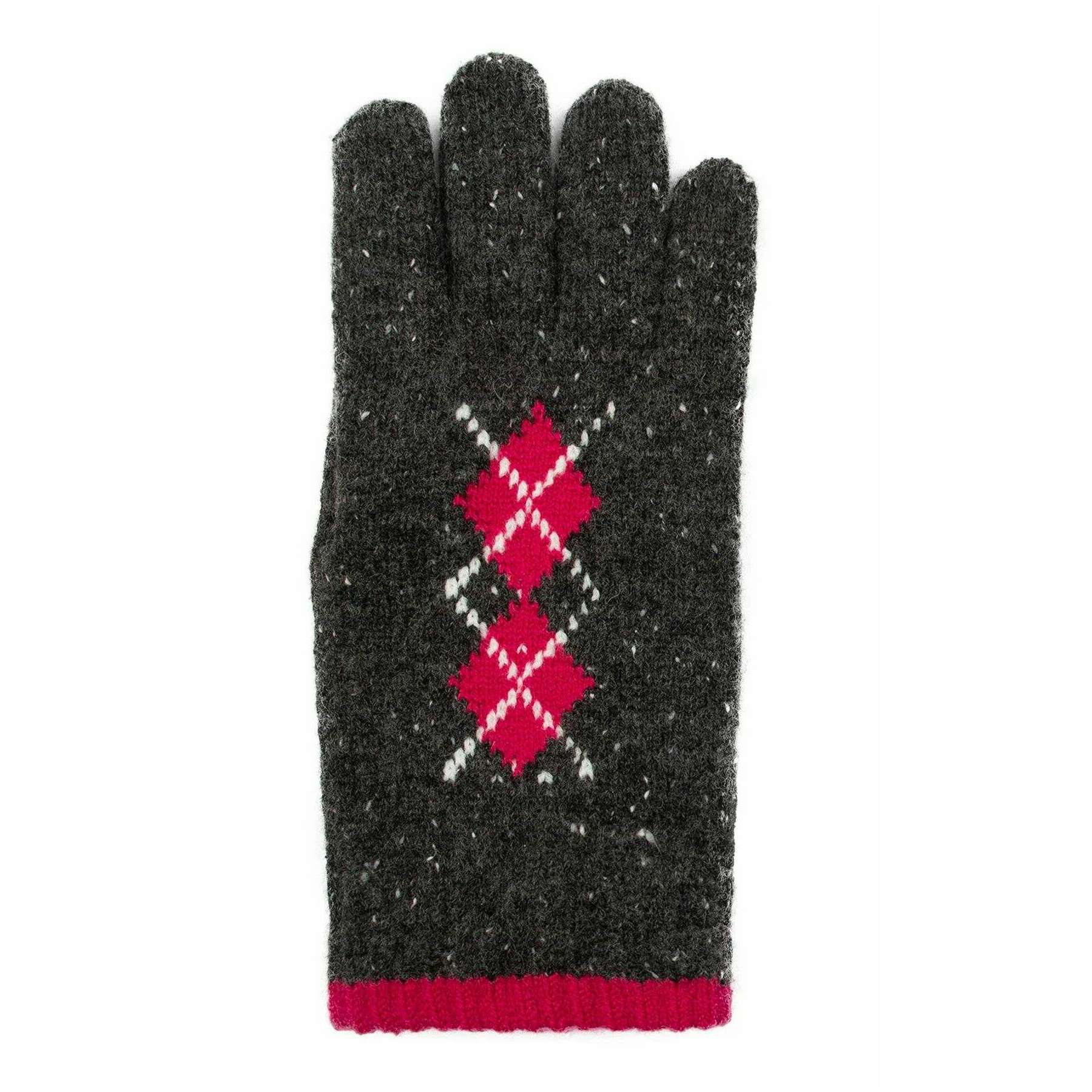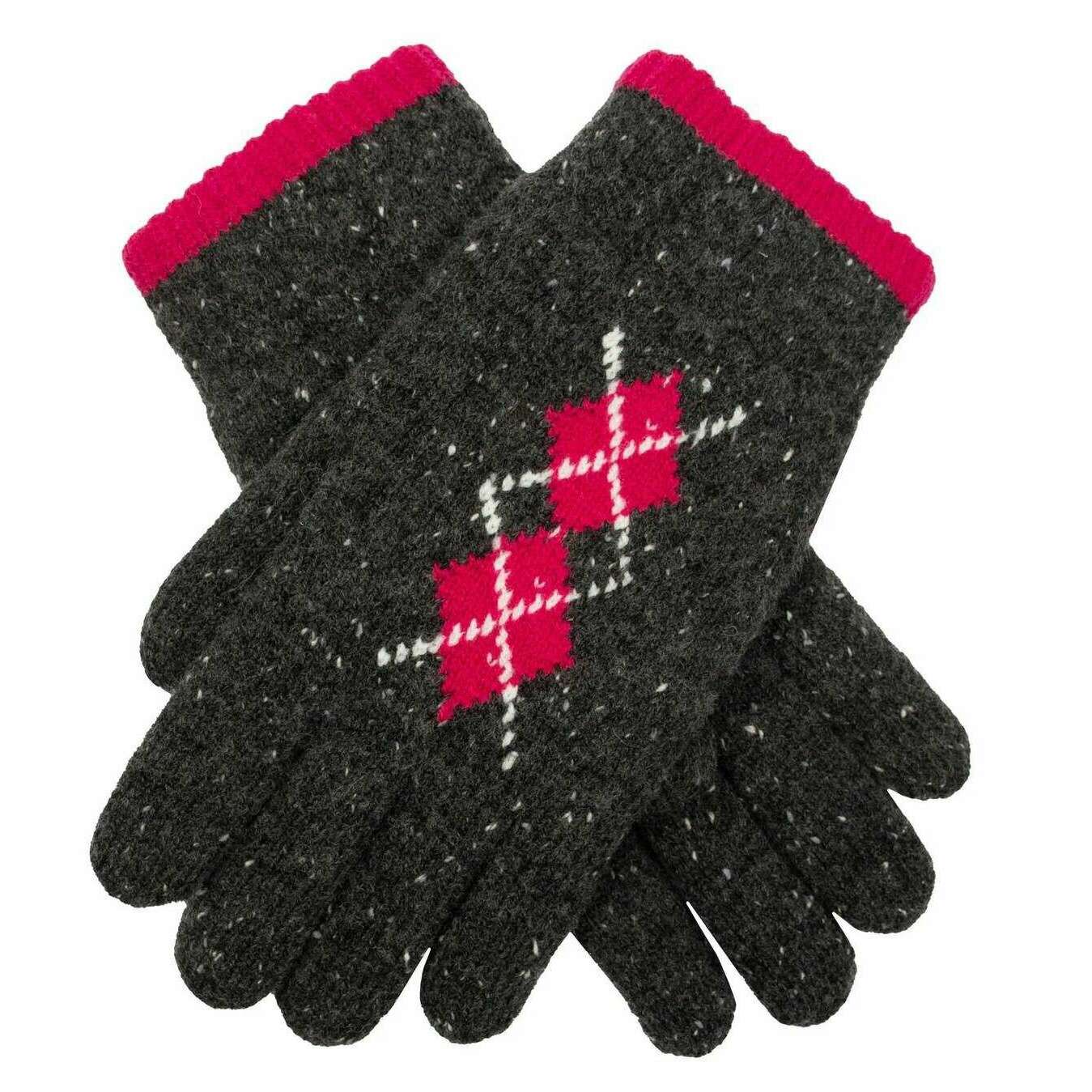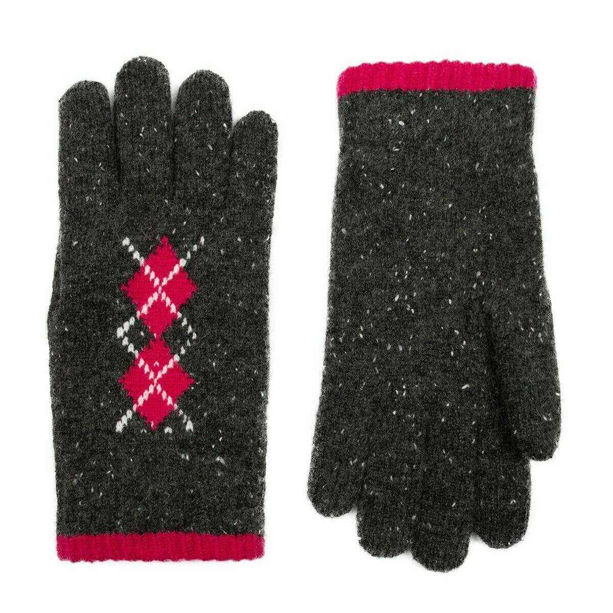 Dents Argyle Marl Yarn Knitted Gloves - Charcoal/Fuchsia Pink