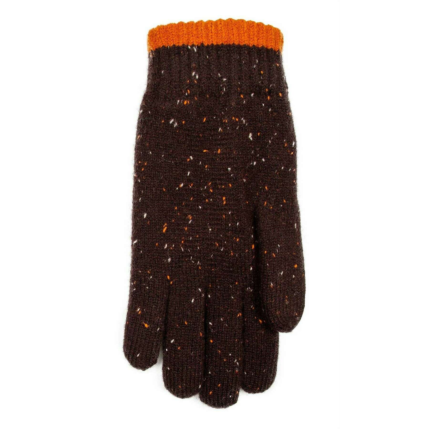 Dents Argyle Marl Yarn Knitted Gloves - Chocolate Brown/Pumpkin Orange