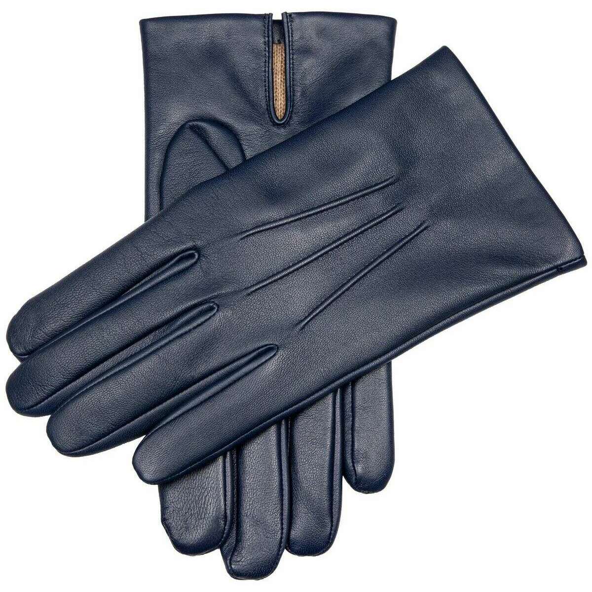 Dents Bath Three-Point Cashmere-Lined Leather Gloves - Navy