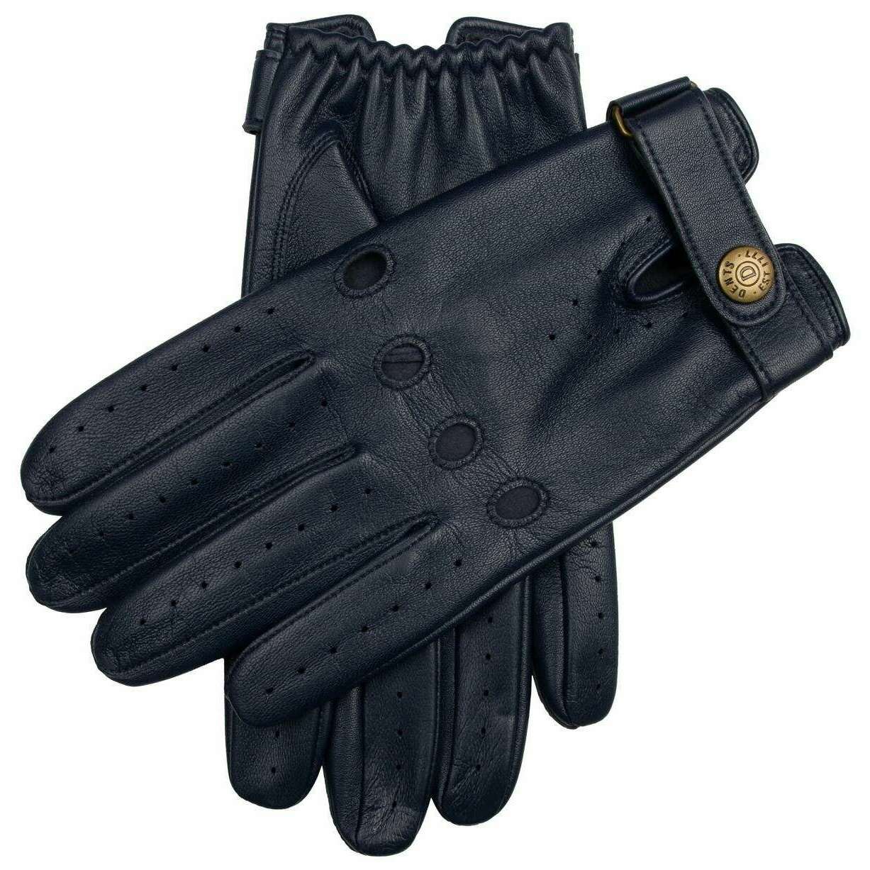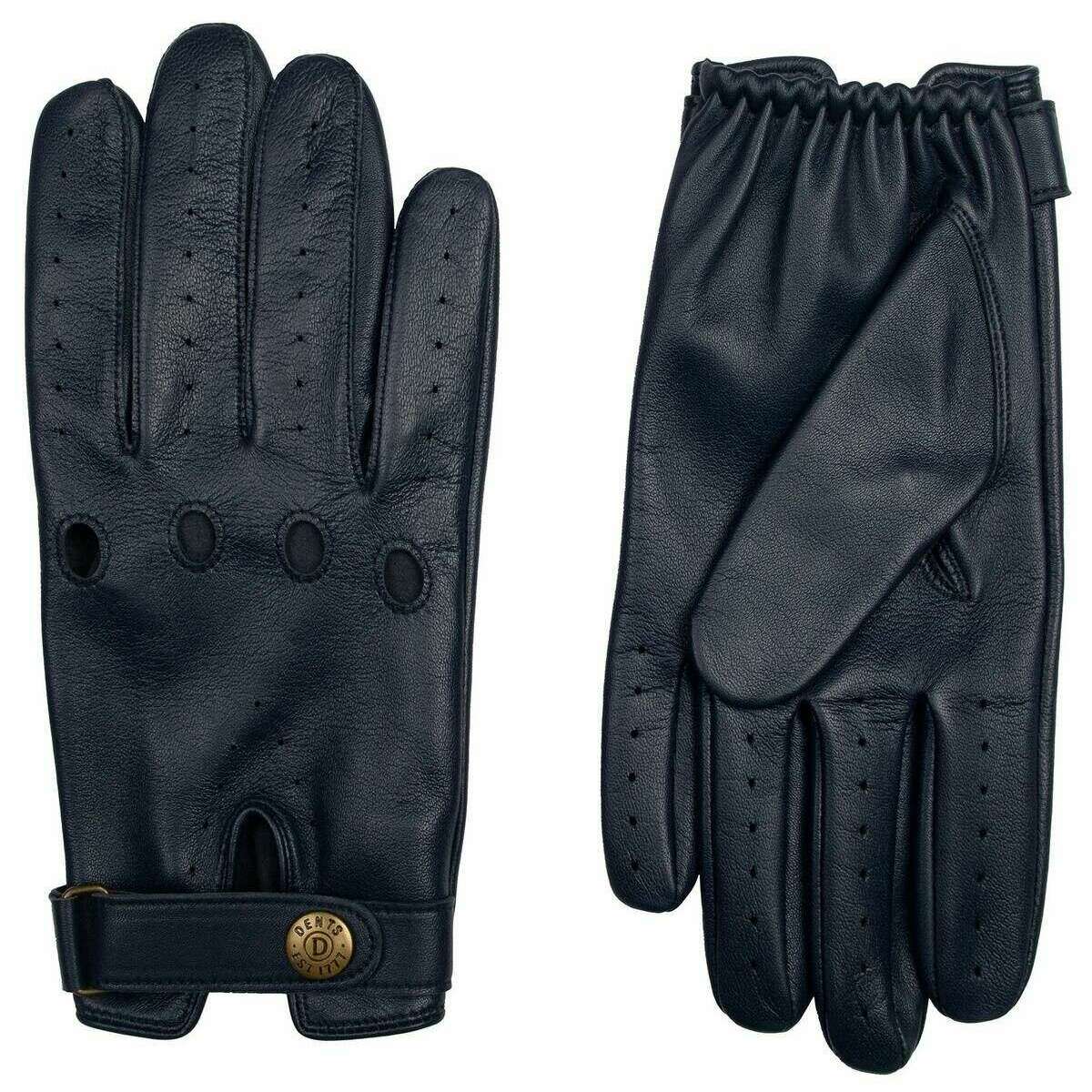 Using navy 100% hairsheep leather, these brooklands leather driving gloves by Dents are perfect for men and a must have. Also the navy gloves are designed in a plain pattern, All the gloves come complete with dents tags. The Dents Brooklands Leather Driving Gloves - Navy offer a twist from the usual driving glove as they don t feature the cut-out backs, giving them a unique finish. The gloves feature intricate details such as perforated holes throughout the fingers and palms, knuckle holes and inseam stitching for a clean finish. It has a centre-closing wrist strap with elasticated wrists and Dents fastener stud to give the wearer a secure and comfortable fit.