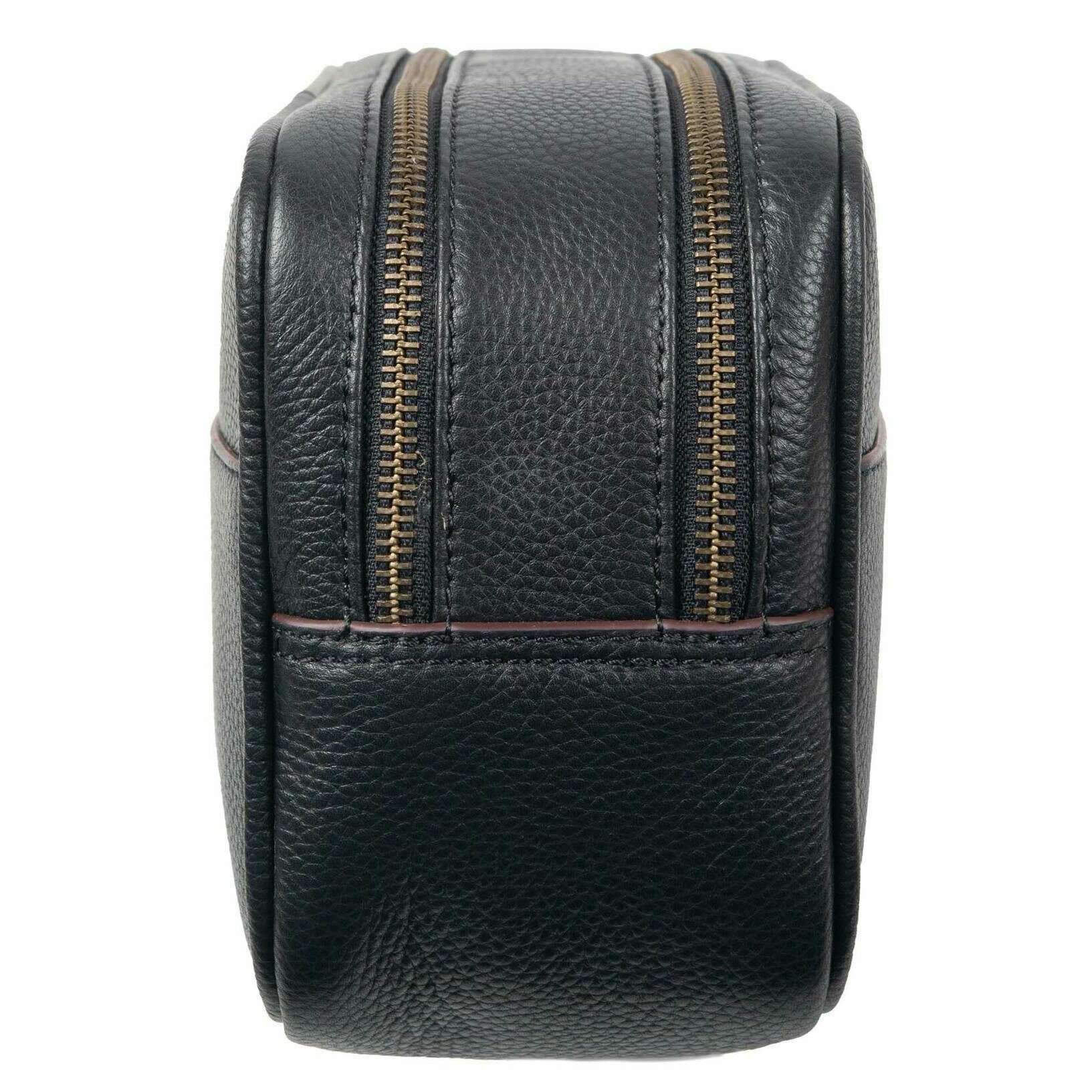 Manufactured from 100% pebble grain leather is this black/bordeaux burgundy men's cherwell wash bag by the designer Dents. It measures 25cm(height) x 15cm(width) x 10cm(depth). All the bags come complete with dents tags. The Dents Cherwell Wash Bag - Black/Bordeaux Burgundy will be perfect for everyday use and a handy companion on your travels. It has two large separate zipped compartments as well as interior slip pockets. This bag is made easy to carry with a leather side handle and is also waterproof. The outside of the bag has the embossed Dents logo for a sophisticated look.