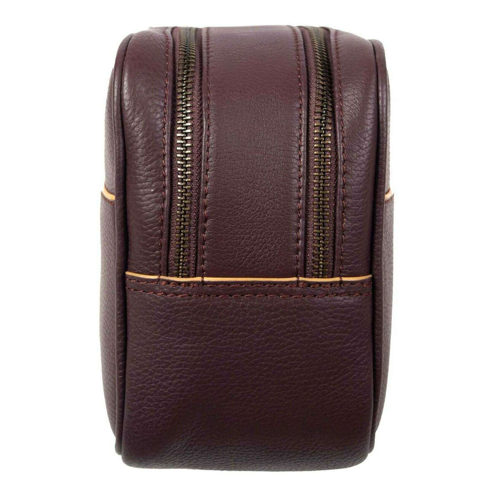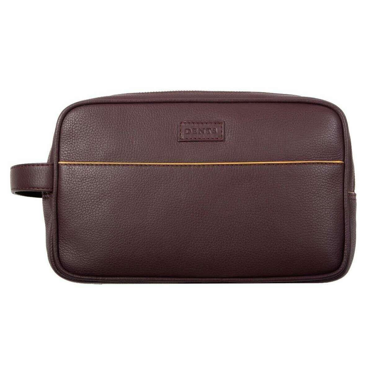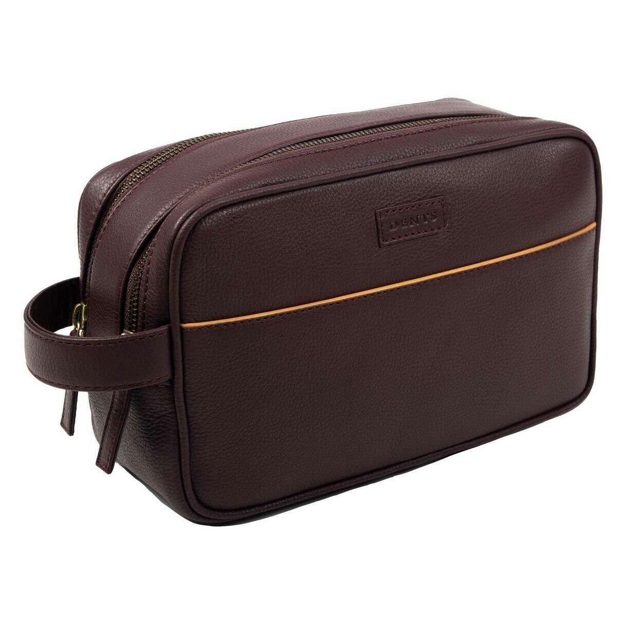Perfect for men is this Dents bordeaux burgundy/light tan cherwell wash bag, it is also made from 100% pebble grain leather. It measures 25cm(height) x 15cm(width) x 10cm(depth). All the bags come complete with dents tags. The Dents Cherwell Wash Bag - Bordeaux Burgundy/Light Tan will be perfect for everyday use and a handy companion on your travels. It has two large separate zipped compartments as well as interior slip pockets. This bag is made easy to carry with a leather side handle and is also waterproof. The outside of the bag has the embossed Dents logo for a sophisticated look.
