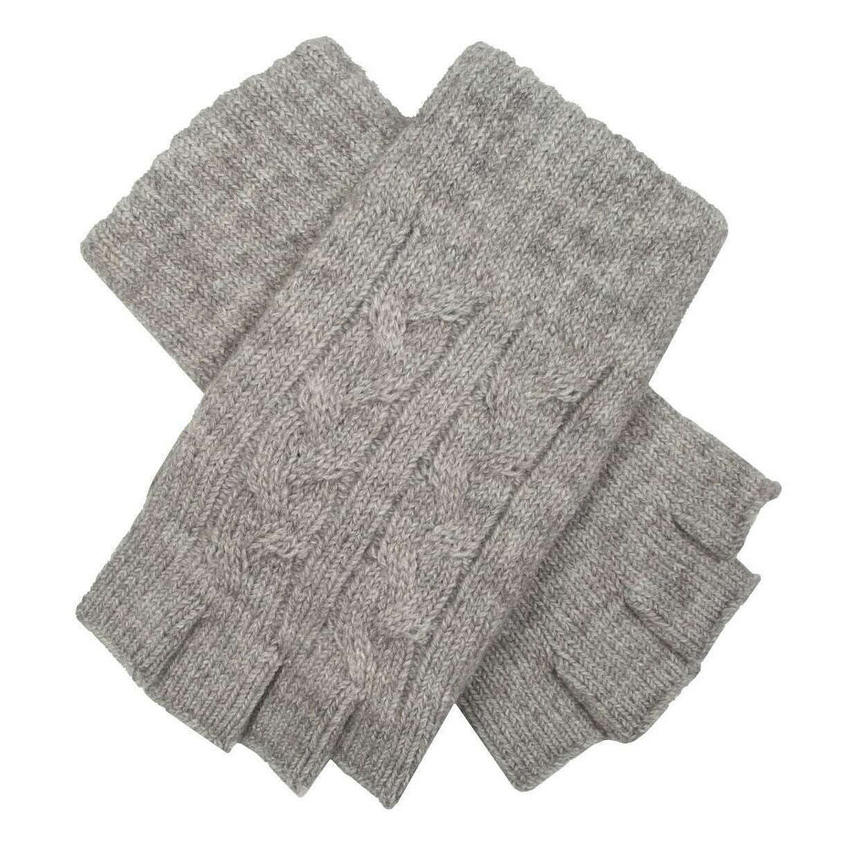 Dents Fingerless Cable Knit Gloves - Dove Grey