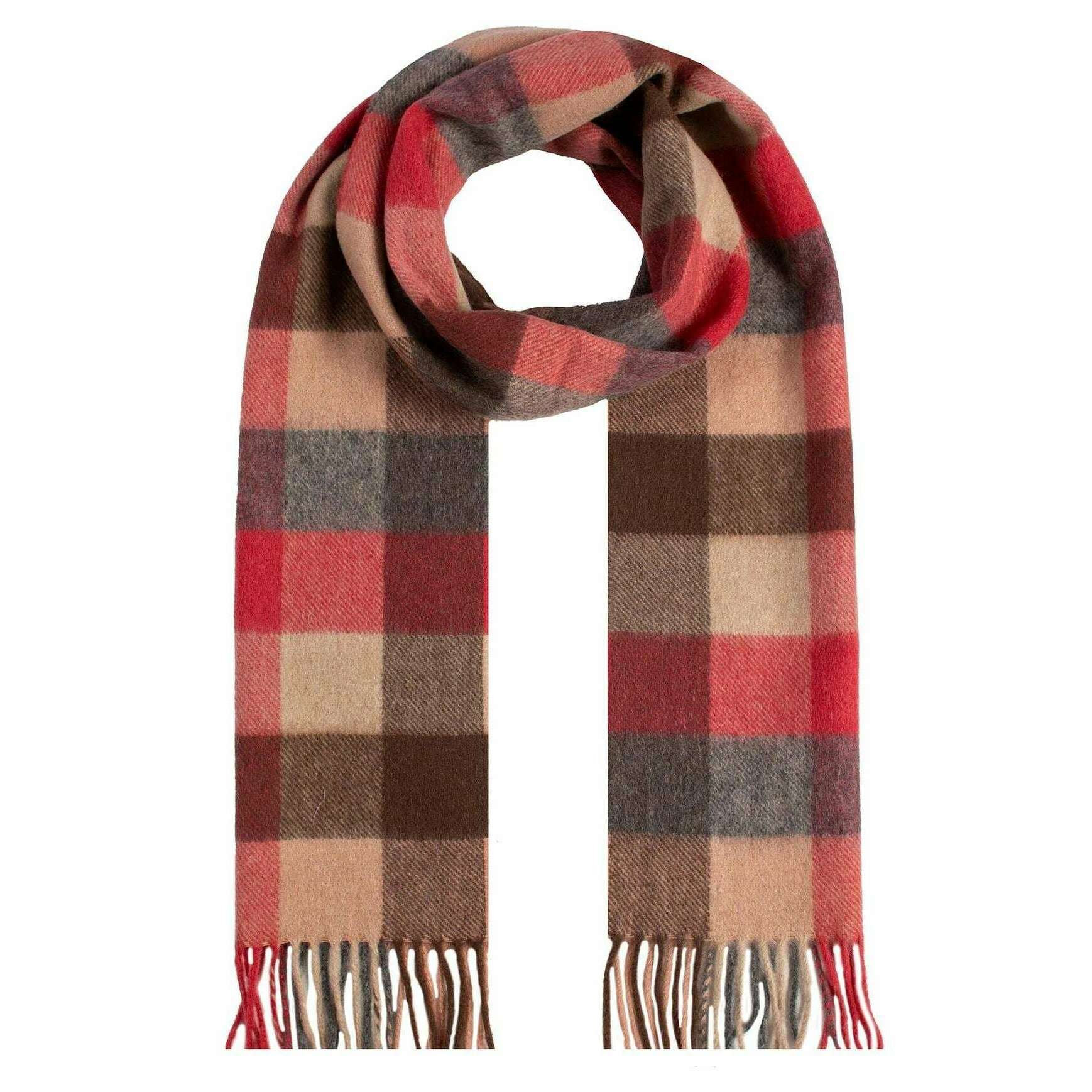 Dents Heritage Plaid Check Cashmere Scarf - Chilli Red/Brown