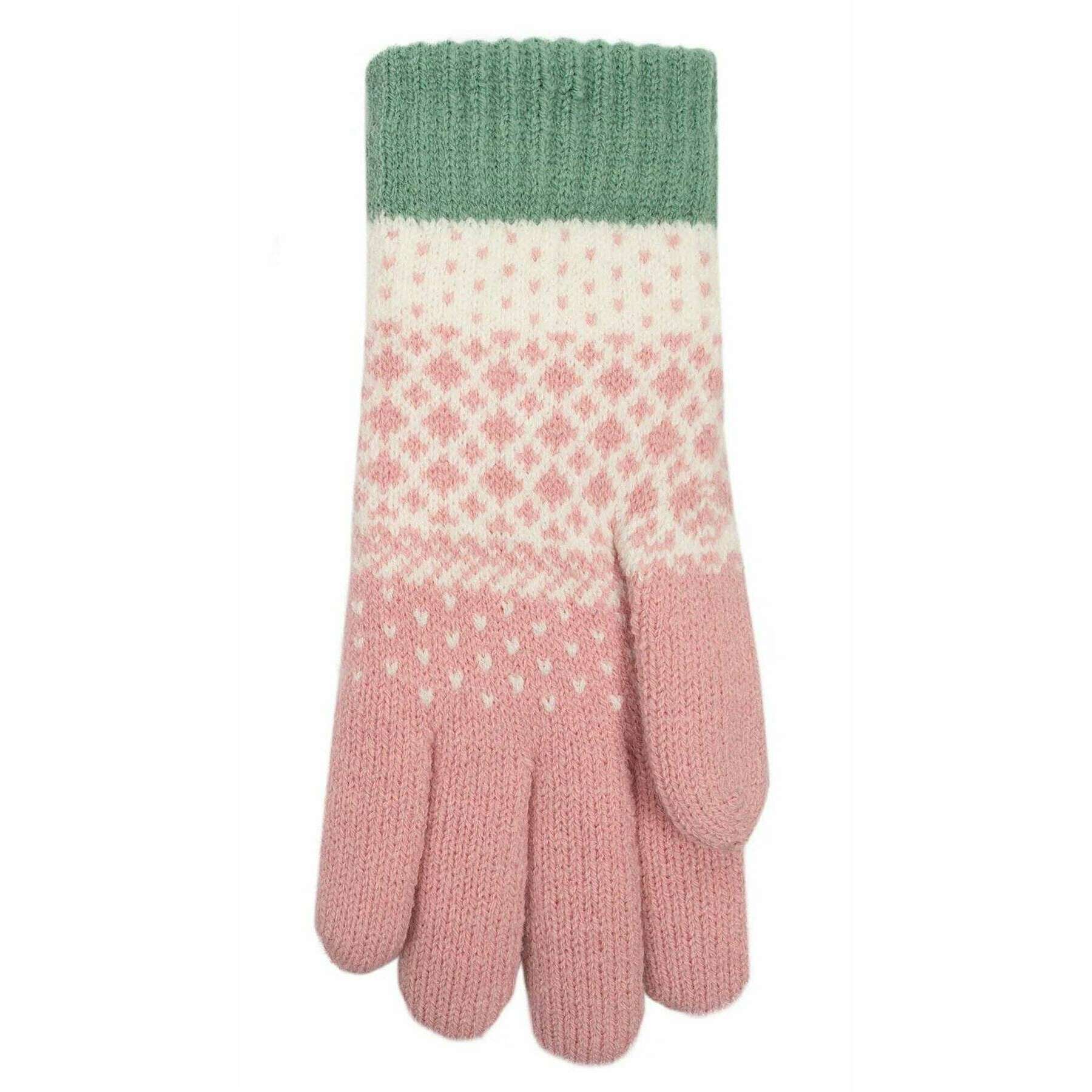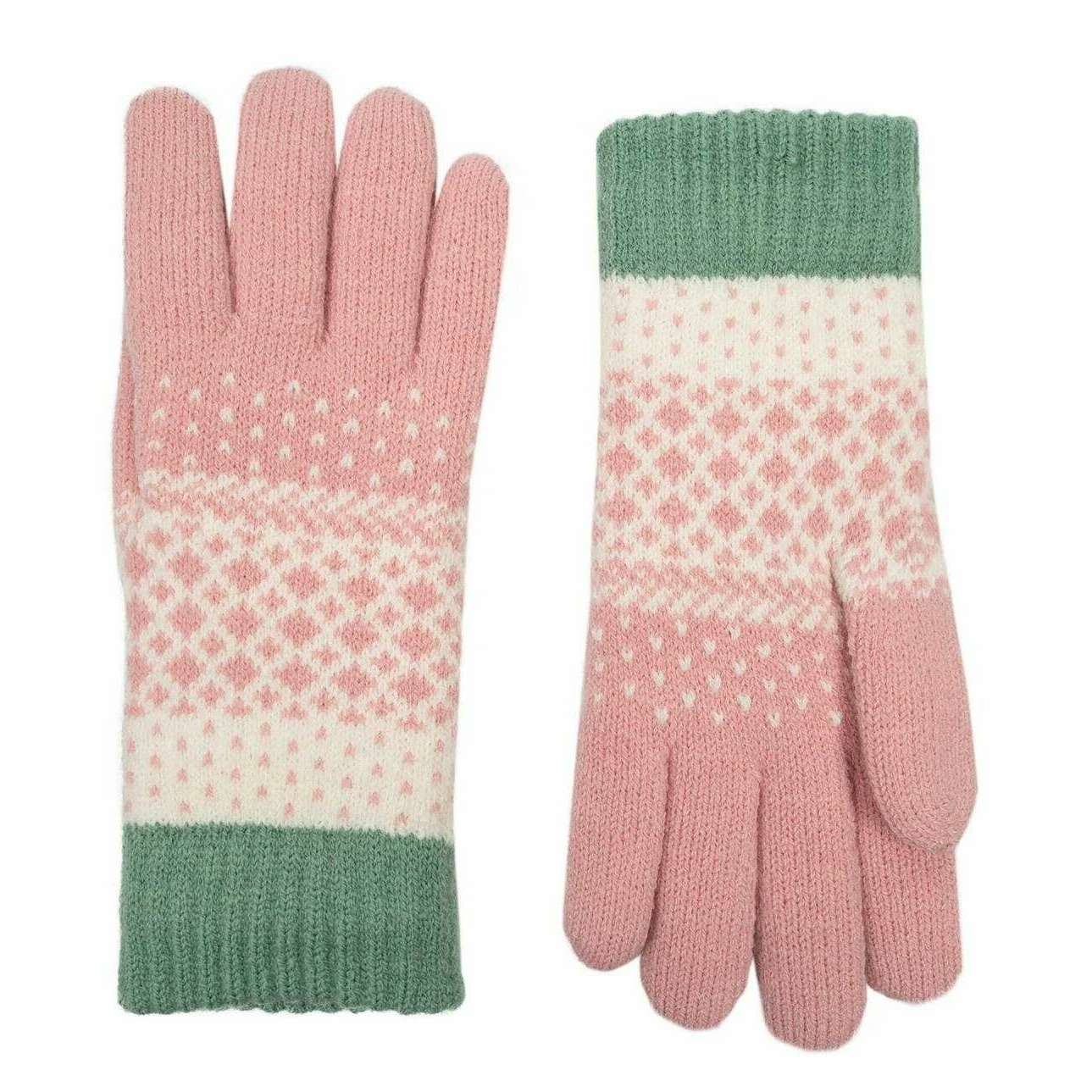Dents Jacquard Polka Dot Knitted Gloves - Powder Pink/Mint Green