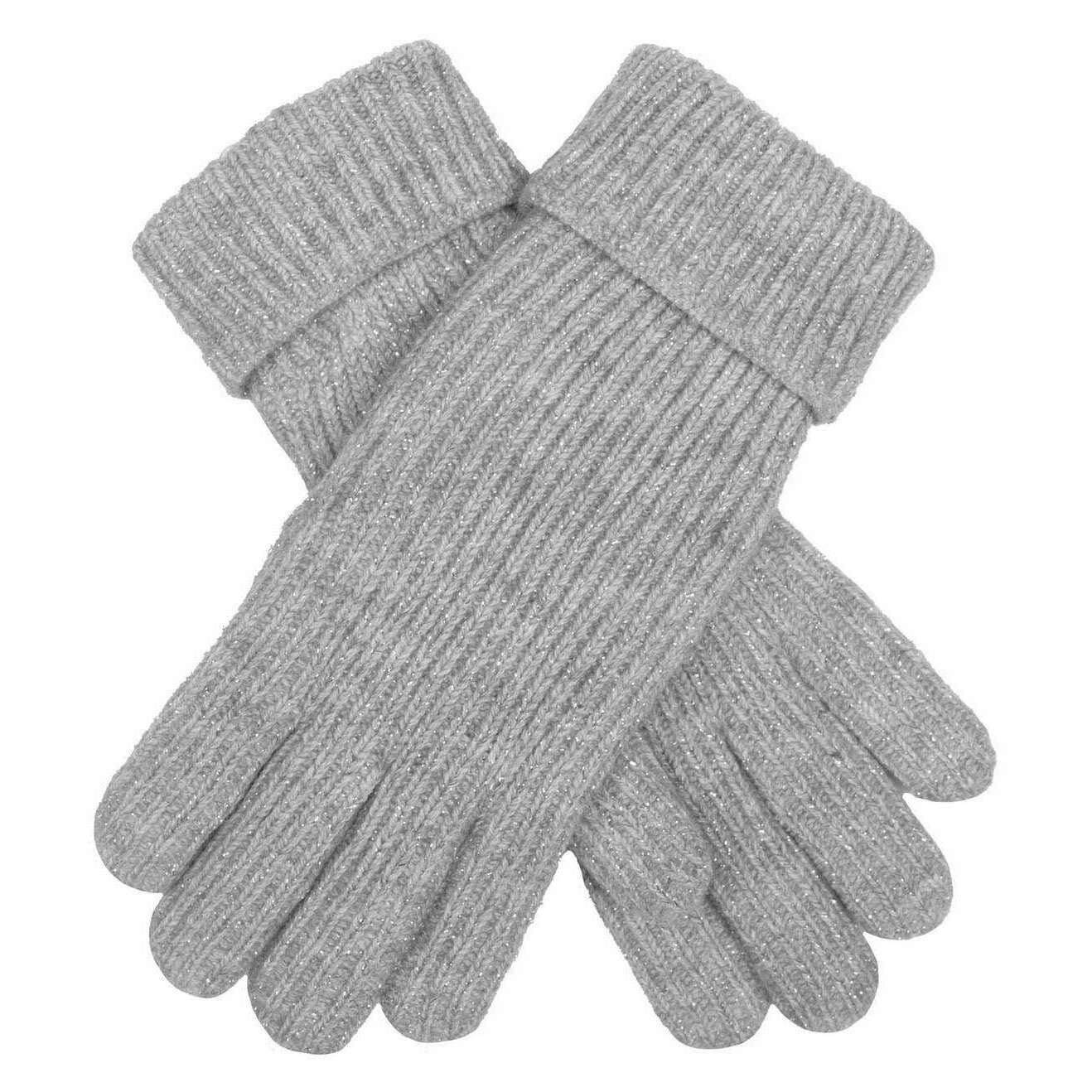 Dents Ribbed Knit Metallic Yarn Gloves - Dove Grey