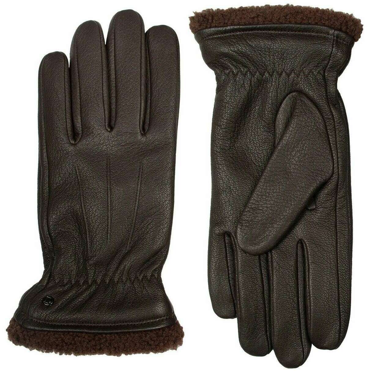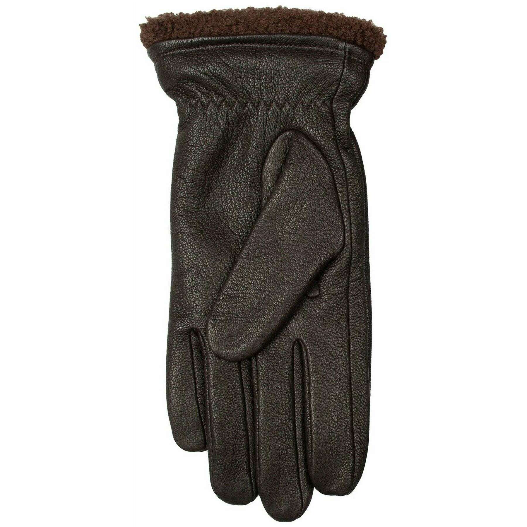Perfect for men are these Dents brown shrewsbury fleece-lined leather gloves, they are also made from outer: deerprint hairsheep leather, lining: 100% polyester fleece. Also the brown gloves are designed in a plain pattern, All the gloves come complete with dents tags. The Dents Shrewsbury Fleece-Lined Leather Gloves - Brown are guaranteed to make an impression thanks to their gorgeous use of material and fine design. Lined with gorgeous warming fleece which protrudes out to the cuff to exaggerate the pure luxury of this pair. Rest assure that your hand will be tremendously toasty inside, making winter and the cold not so bad after all. Three machine sewn points can be seen on the back which is complemented by decorative stitching to finish. An elasticated wrist gives the wearer freedom of movement while also creating a comfortable and snug fit.