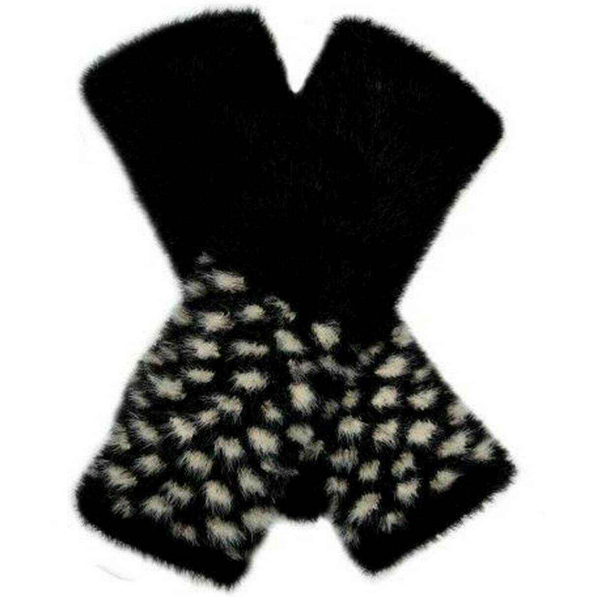 Dents Spotted Feather Yarn Knitted Wrist Warmers - Black