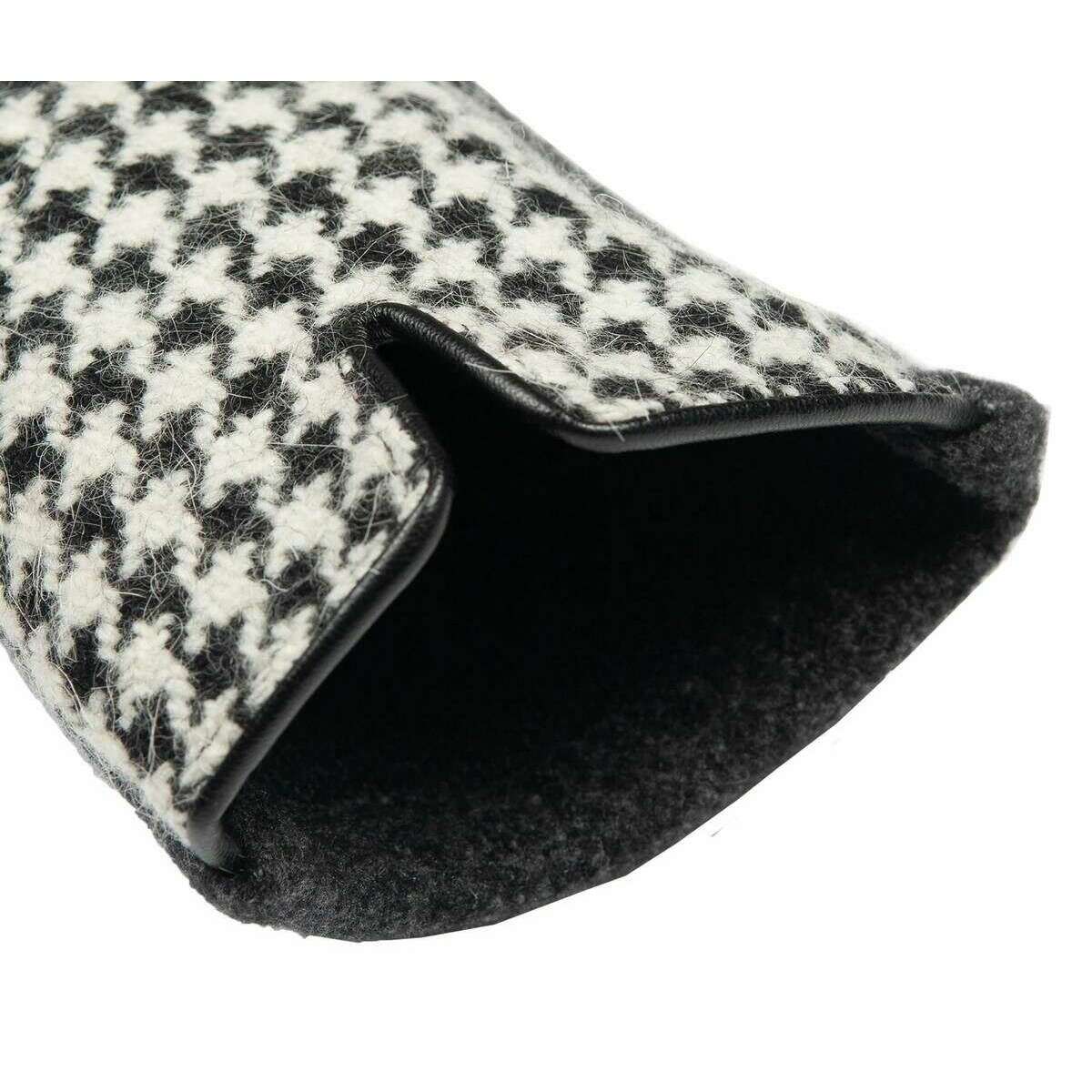 These touchscreen dogtooth design gloves for women are fashioned by the brand Dents in a black colour and are made from 90% polyester and 10% spandex. Also the black gloves are designed in a houndstooth pattern, It is recommended to hand wash only to keep these gloves in good condition. All the gloves come complete with dents tags. The Dents Touchscreen Dogtooth Design Gloves - Black are an iconic dogtooth glove to have in your wardrobe this winter. Suitable for any occasion and activity due to the heart-shaped touchpads on the index finger and thumb, which allow you to use any device without having to remove your gloves. These detailed and high-quality black gloves are perfect for your autumn and winter days.