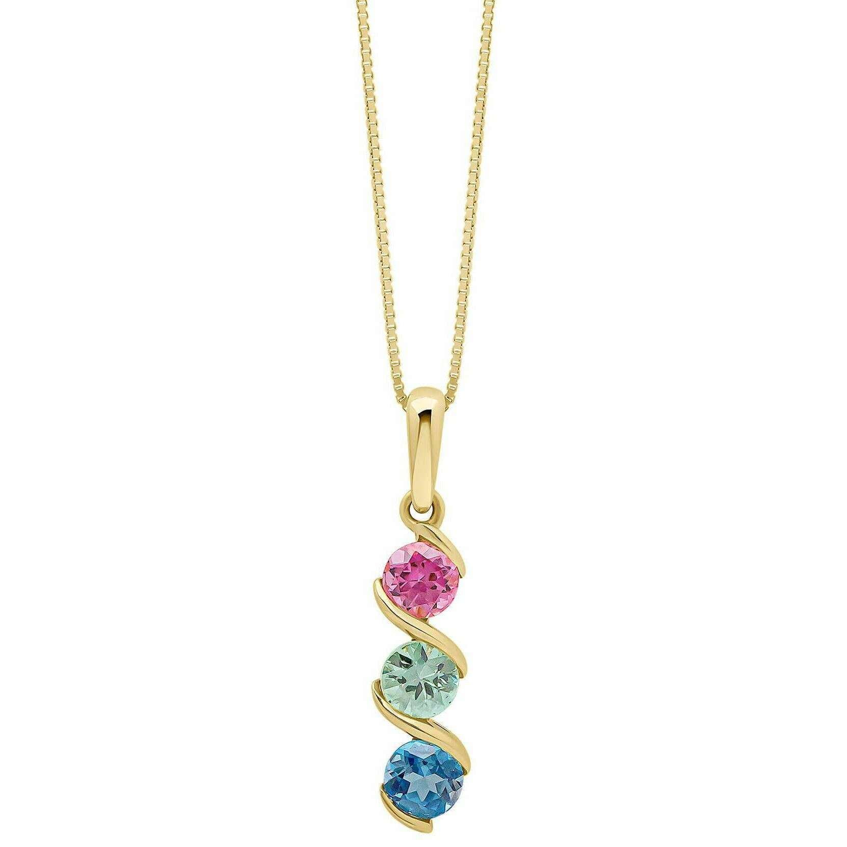 Elements Gold Amalfi Three Colour Twist 9ct Gold Pendant - Green/Pink/Blue