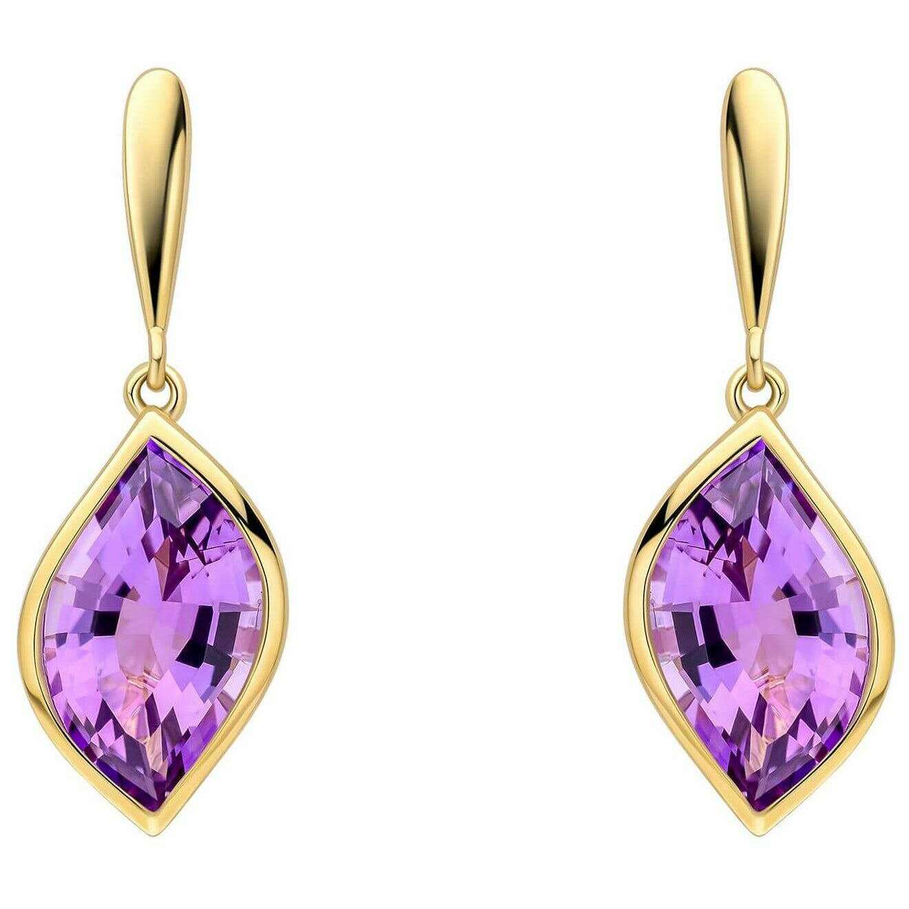Elements Gold Flame Cut Amethyst 9ct Gold Earrings - Gold/Purple