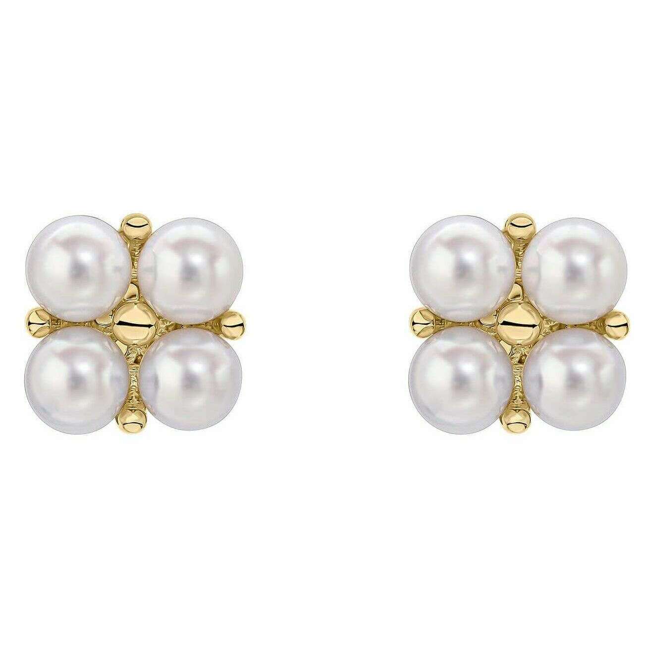 Elements Gold Floral Freshwater Pearl 9ct Gold Earrings - Gold/White