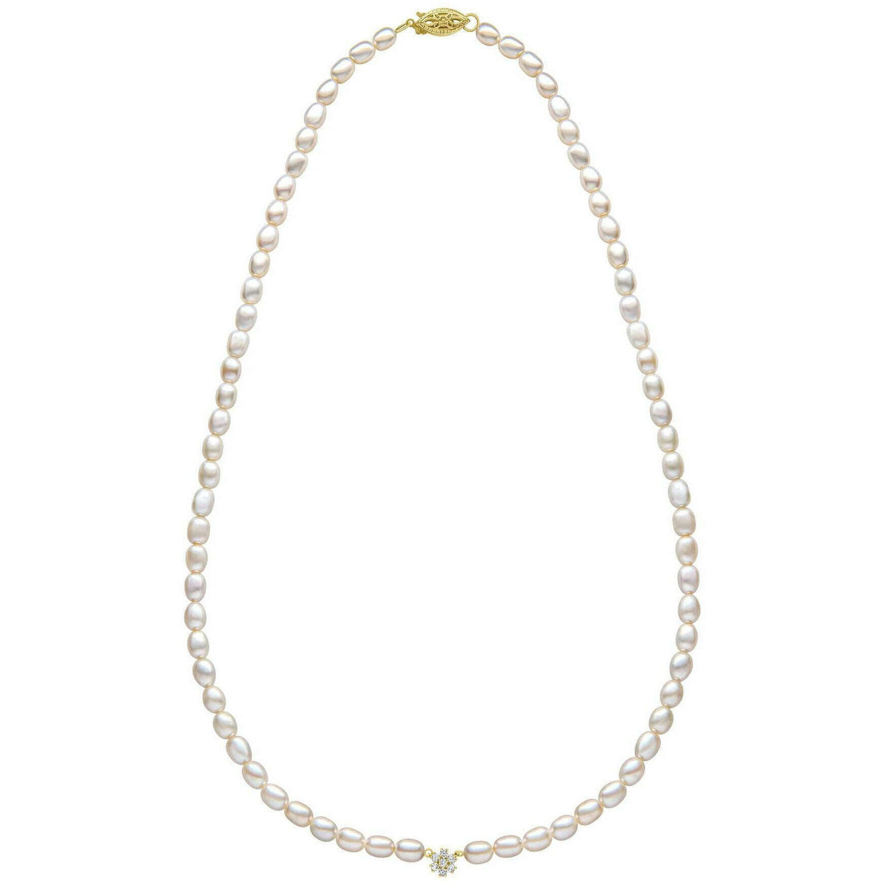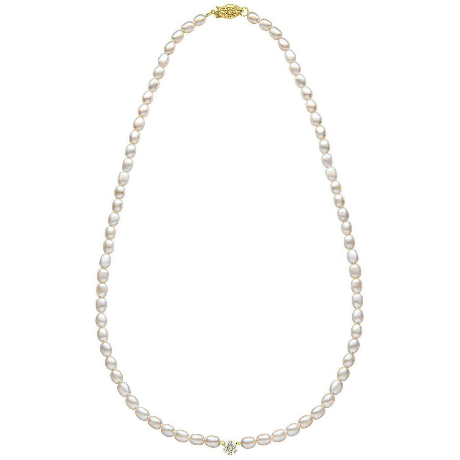 Elements Gold Seed Pearl and Flower 9ct Gold Necklace - Gold/White