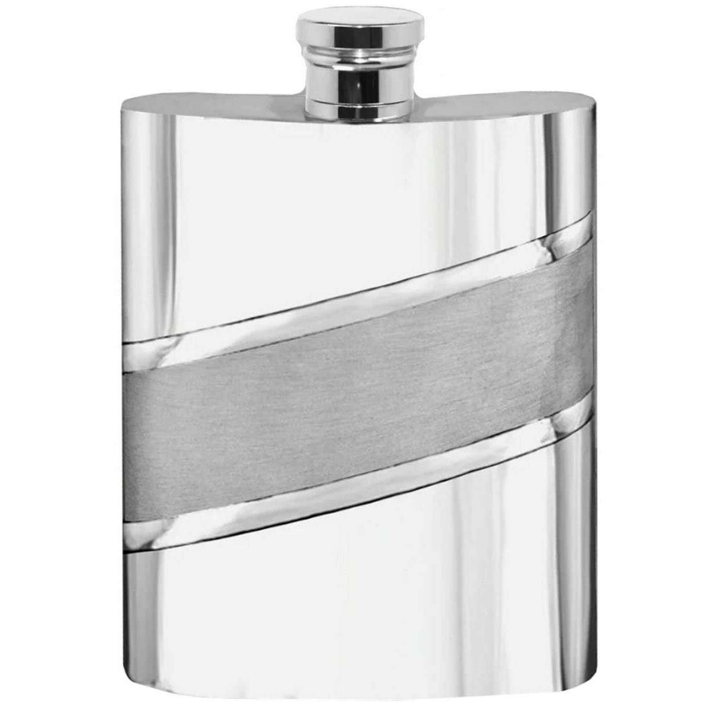 English Pewter Company 6oz Diagonal Satin Band Hip Flask - Silver