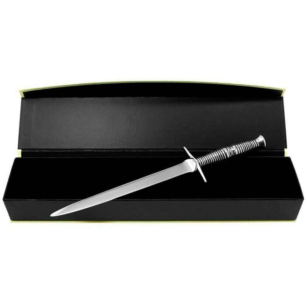 Perfect for men or women is this English Pewter Company silver celtic sword letter opener, it is also made from pewter. It measures 21.25cm(height). All the desk accessories come complete in a english pewter company gift box. The English Pewter Company Celtic Sword Letter Opener - Silver is an ideal accessory to have to hand when it comes to opening your mail, giving you a clean cut rather than the un-even rips you get when using your fingers. It is a much easier method making the task much more efficient.