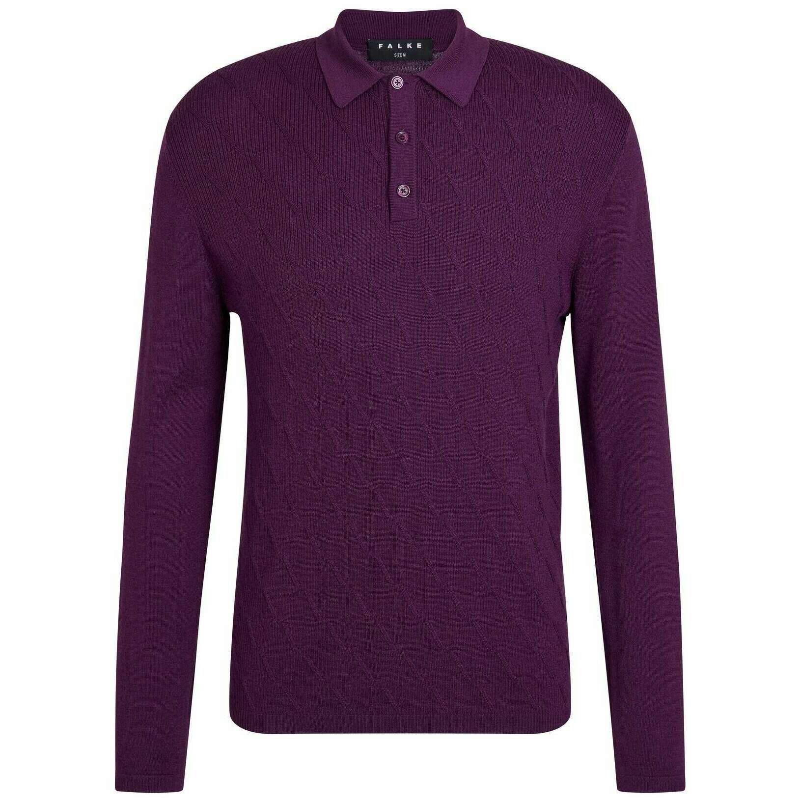 This well made men's cashmere touch long sleeve polo sweater from Falke comes in a aubergine purple colour and is manufactured from 69% virgin wool, 20% silk, 10% cashmere and 1% elastane. Also the aubergine purple polo shirt is designed in a plain pattern, It is recommended to machine wash at 30 degrees to keep this polo shirt in good condition. All the polo shirts come complete with falke packaging. The Falke Cashmere Touch Long Sleeve Polo Sweater - Aubergine Purple oozes luxury and sophistication for an everyday wear that will elevate your wardrobe. Crafted from a cashmere blend offers a super-soft touch, warmth and a breathable finish perfect for a year-round piece. The classic yet simple design allows this sweater to be styled in endless ways making it timeless and versatile. The regular fit, braided texture and French shoulders combine for a completed look. Its fully fashioned workmanship guarantees a precise fit and durability, to enjoy for years to come.