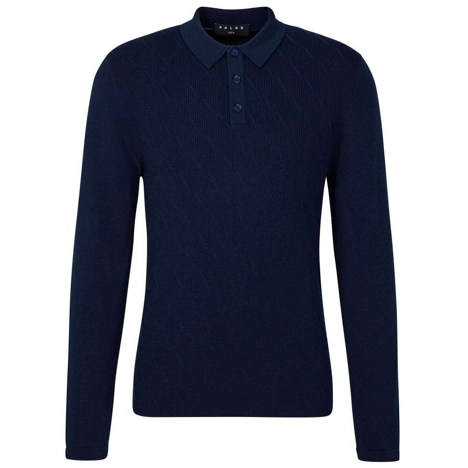 Falke Cashmere Touch Long Sleeve Polo Sweater - Space Blue