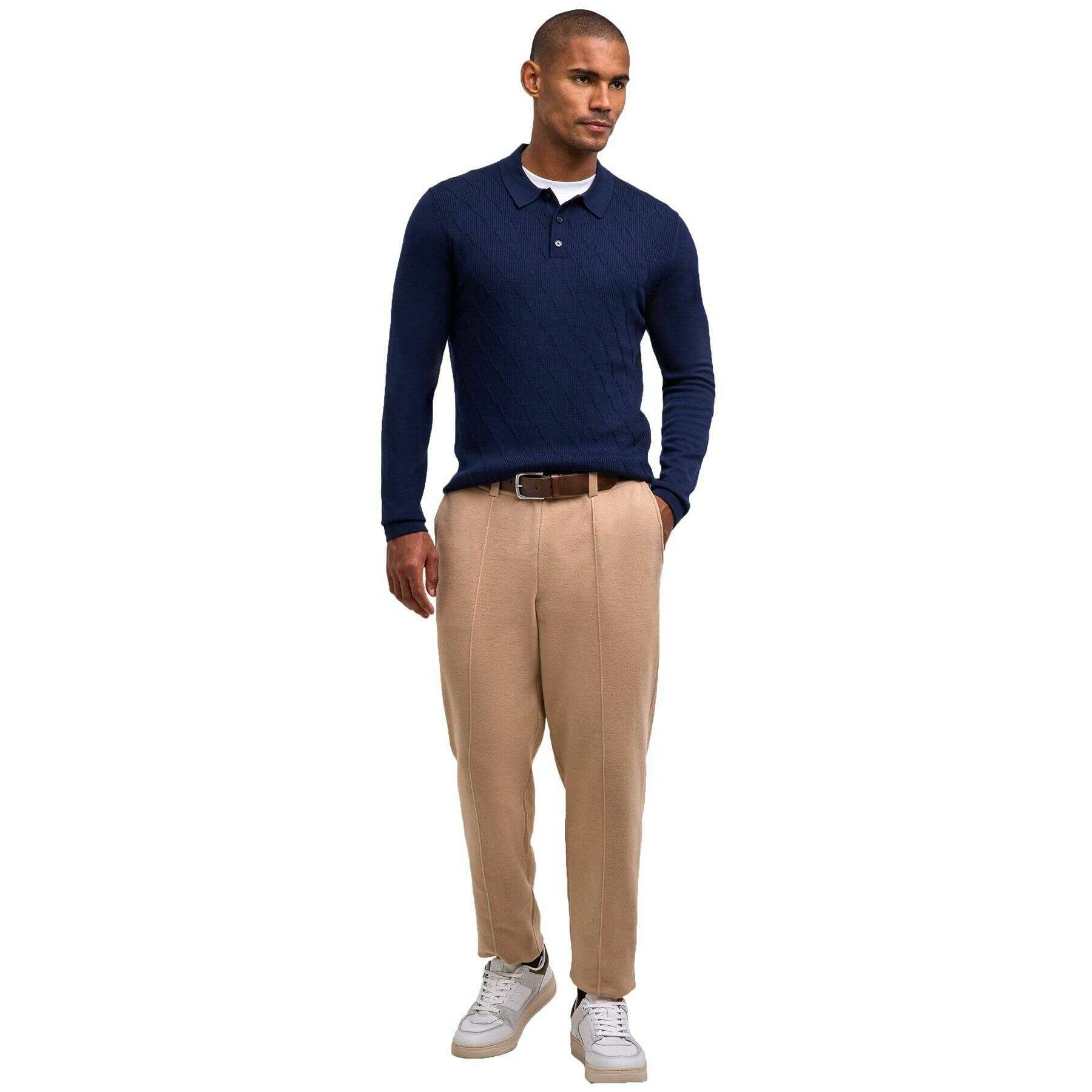 • Buttoned Polo Collar , High-Quality , Regular Fit , Braided Texture , French Shoulders , Temperature-Regulating , Breathable , Climate Control