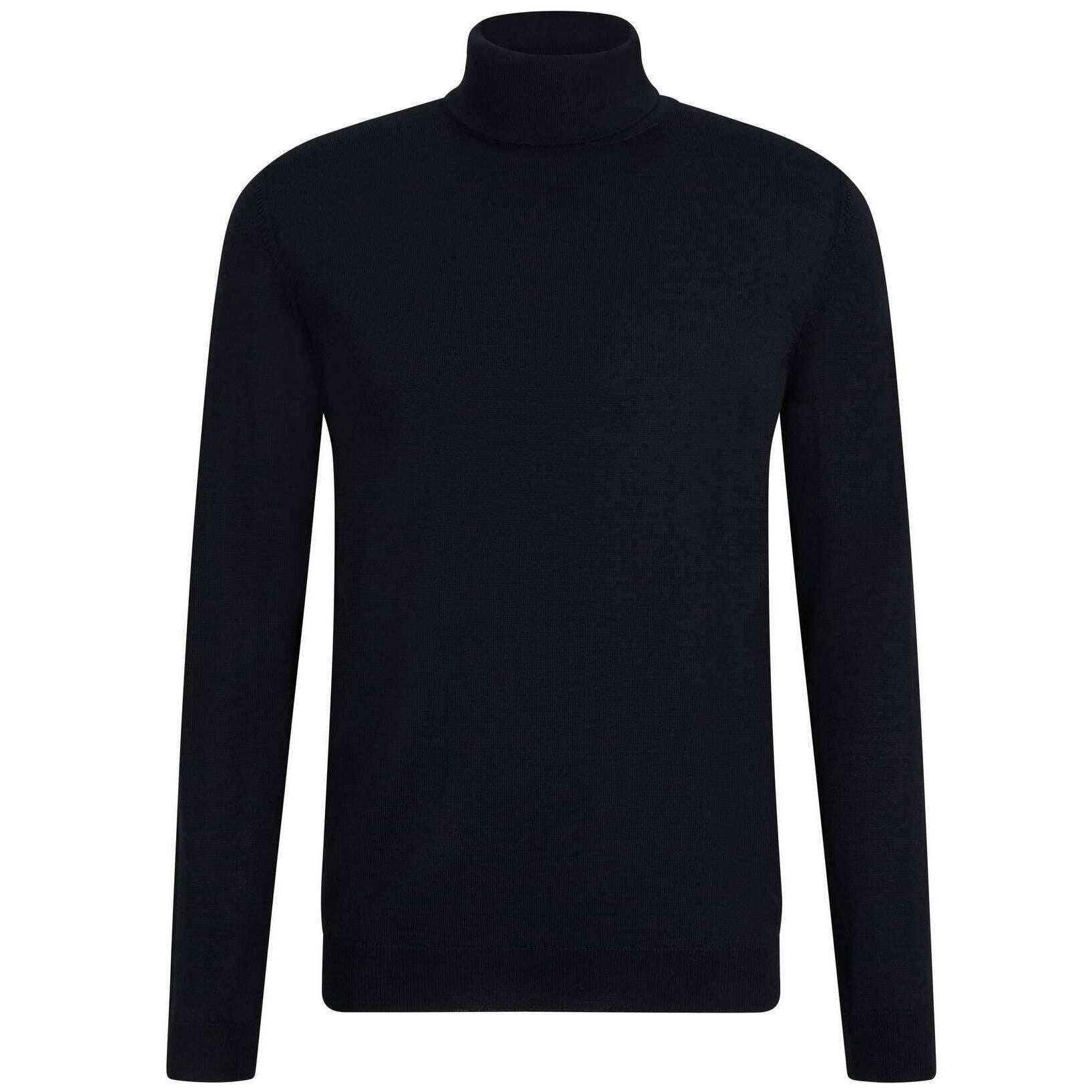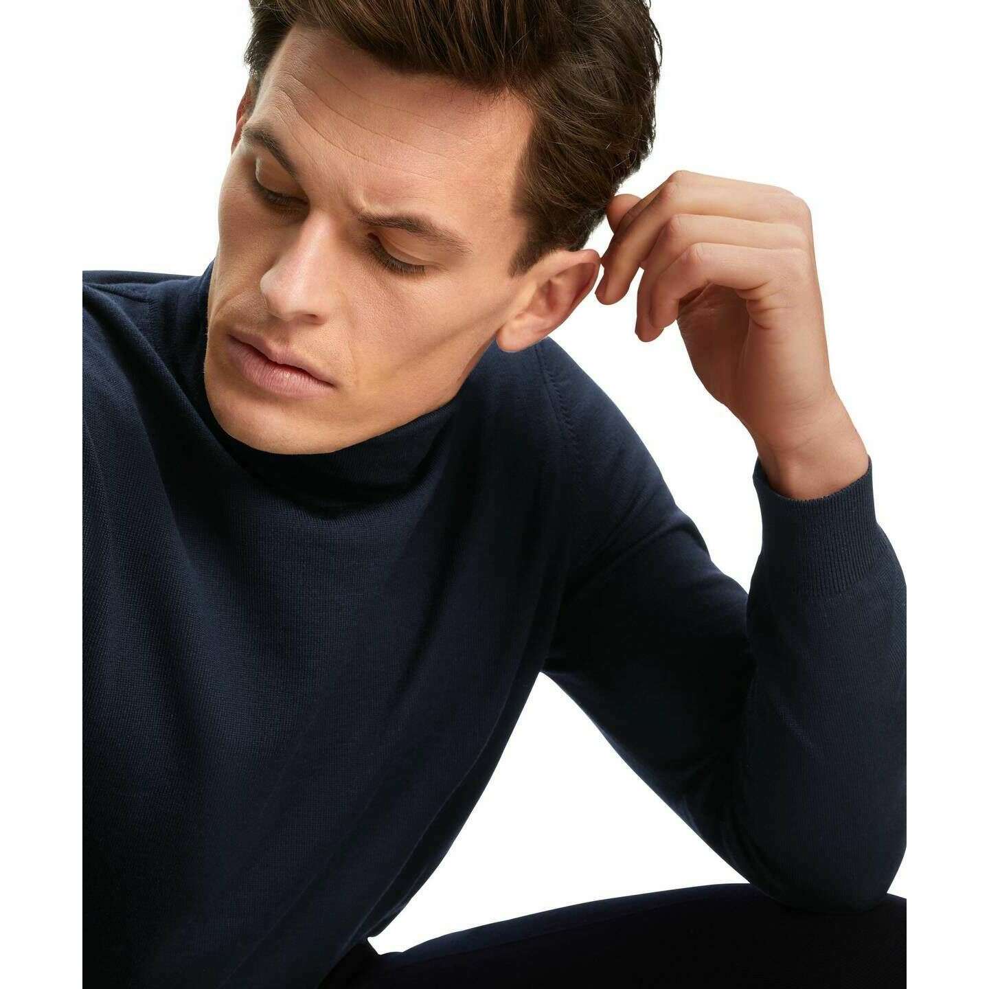 This men's merino x-fine roll neck sweater by the brand Falke is made from 100% virgin wool and is showcased in navy. Also the night sky navy jumper is designed in a plain pattern, It is recommended to machine wash at 30 degrees to keep this jumper in good condition. All the jumpers come complete with falke packaging. The Falke Merino X-Fine Roll Neck Sweater - Night Sky Navy is a must-have piece to elevate your winter wardrobe with the classic design to give that traditional touch. Crafted from mulesing-free merino wool gives a light wear perfect for mild to cold outdoor temperatures keeping you warm in the autumn and winter. Giving this sweater its fashionable look is the French shoulder seams, fine ribbed neckline and elasticated ribbed cuffs on the trunk and sleeves. The high-quality 'fully fashioned' processing gives an exclusive feel that will be enjoyed and will stay this way for many years to come.