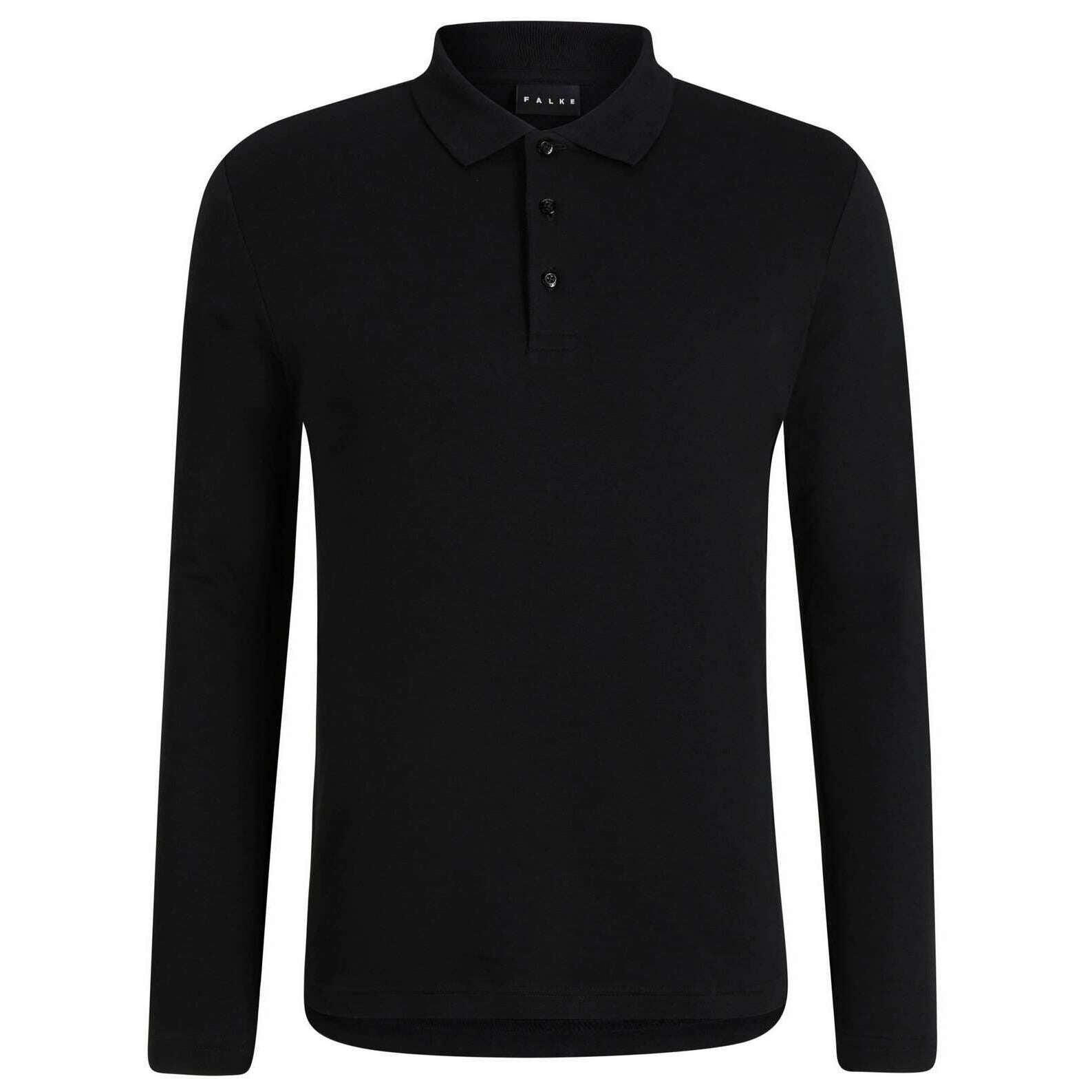Falke Pima Interlock Long Sleeve Polo Shirt - Black